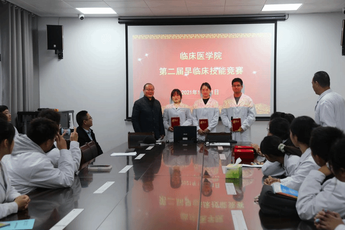 经过激烈角逐,程光媛、梁鑫悦、李运辉、贾宗鑫、闵姝睿、王紫凡等分别获得心肺复苏术、胸腔穿刺术、动静脉穿刺术、导尿术穿脱隔离衣一等奖,其余35名同学分别获二、三等奖。临床医公司党委书记傅万山、副经理陈祥攀、培训教师为获奖参赛选手颁发奖状。颁奖仪式由临床医学实验实训中心副主任钱大青主持。