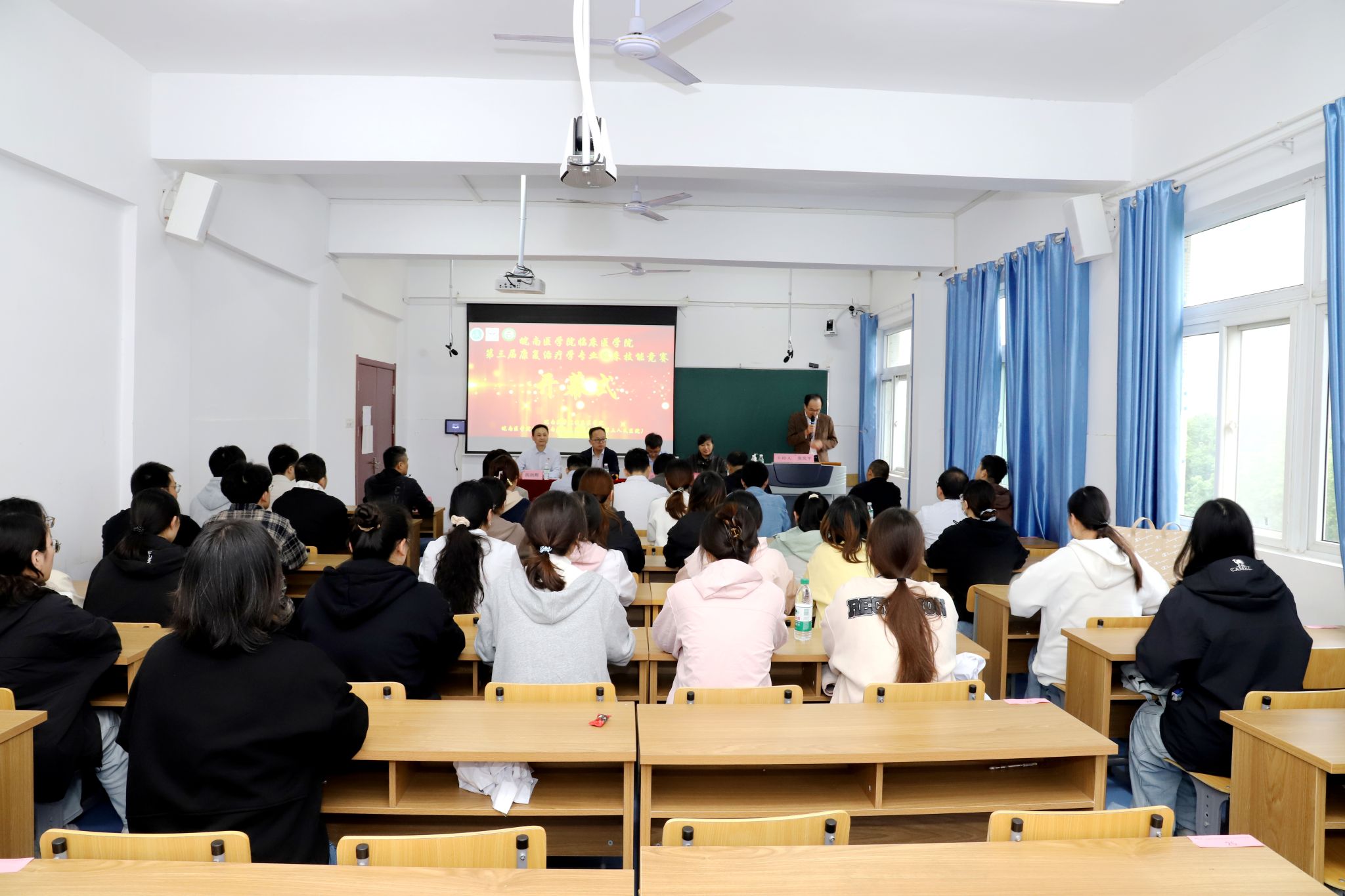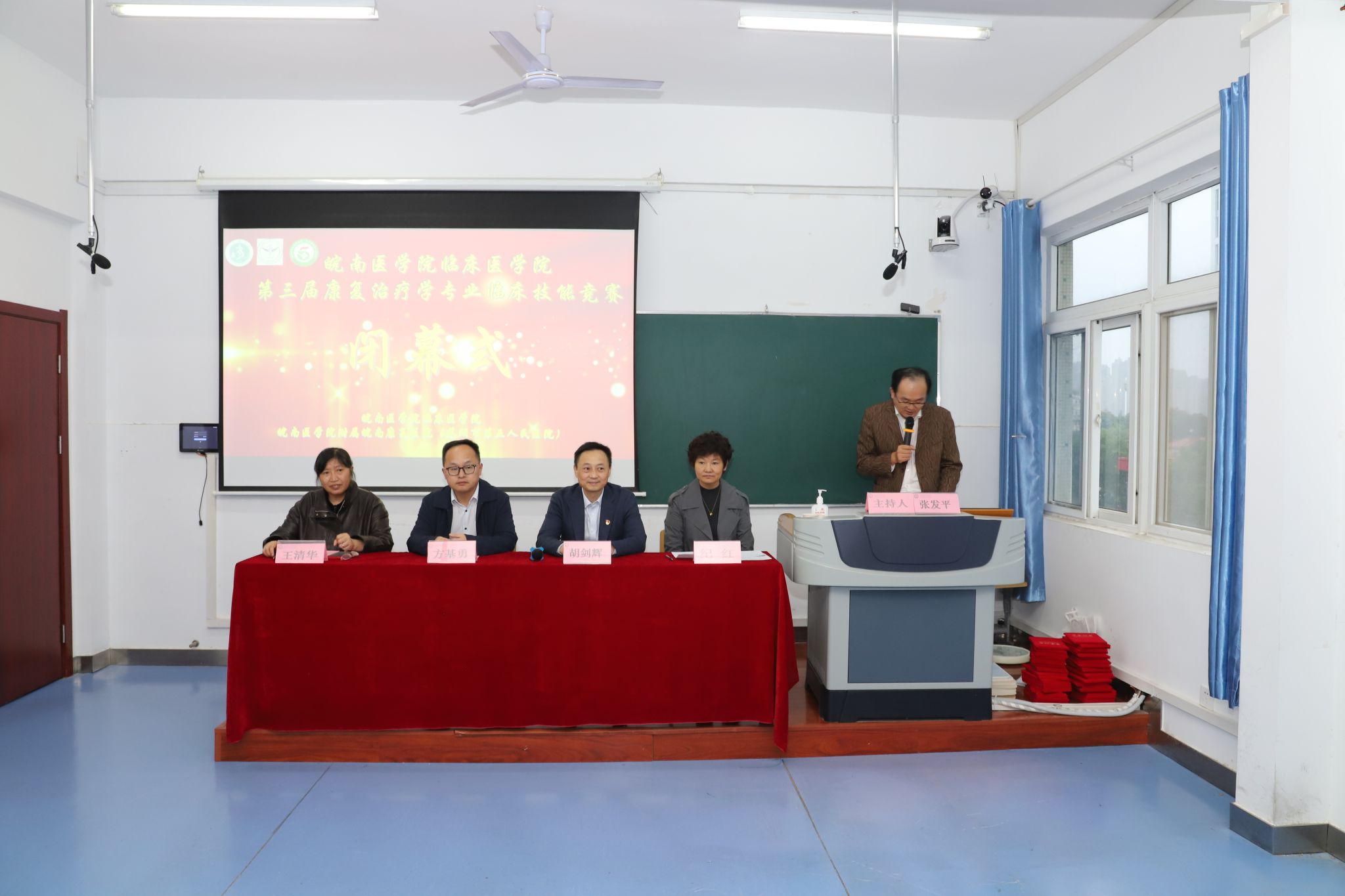 18日上午,在附属皖南康复医院7号楼技能中心举行开幕式。临床医公司党委书记方基勇,附属皖南康复医公司党委副书记、经理徐茂奇,附属皖南康复医院副经理胡剑辉,安徽卫生健康职业公司教学主任杨芳,第一附属医院康复医学科主任王清华,附属太和医院(太和县人民医院)经理助理兼康复医学科主任蒿飞,芜湖市第一人民医院康复科主任纪红,附属皖南康复医院康复科主任张致亮,全体指导教师和参赛队员等参加开幕式。方基勇和徐茂奇分别致开幕词和欢迎词,杨芳作为裁判代表宣誓,王清华宣读赛场规则。开幕式由附属皖南康复医院科教部主任张发平主持。