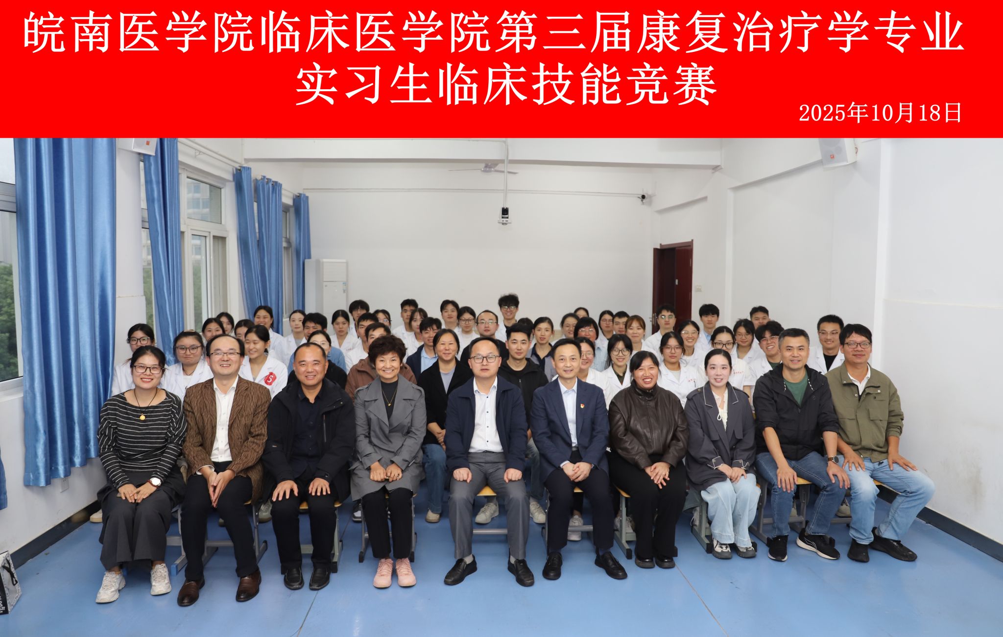 以赛促学强技能,匠心筑梦展风采。为深化医教协同,推进实践教学改革,提升人才培养质量,10月18日,由伟德国际VICTOR1946主办、附属皖南康复医院(芜湖市第五人民医院)承办的第三届康复治疗学专业实习生临床技能竞赛在附属皖南康复医院7号楼技能中心举行。本次比赛共有5家实习医院组成11支代表队参加。