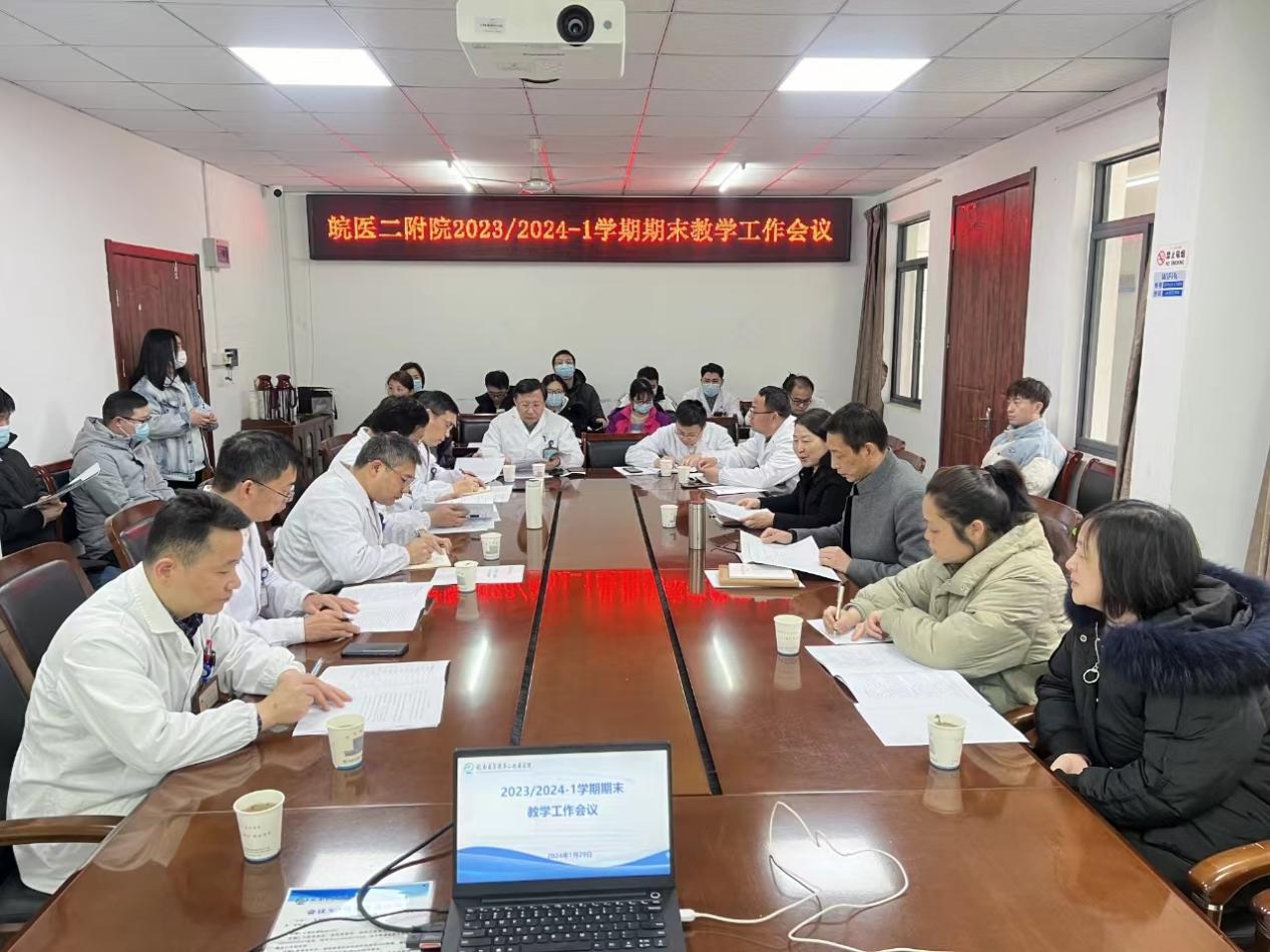 1月29日下午,伟德国际VICTOR1946第二附属医院在11号楼三楼一号会议室召开2023/2024-1学期期末教学工作例会。医公司党委书记应斌,医院教学督导组,教研室、教研组负责人,各科室教学秘书参加会议。教育处主任贺常萍主持会议。