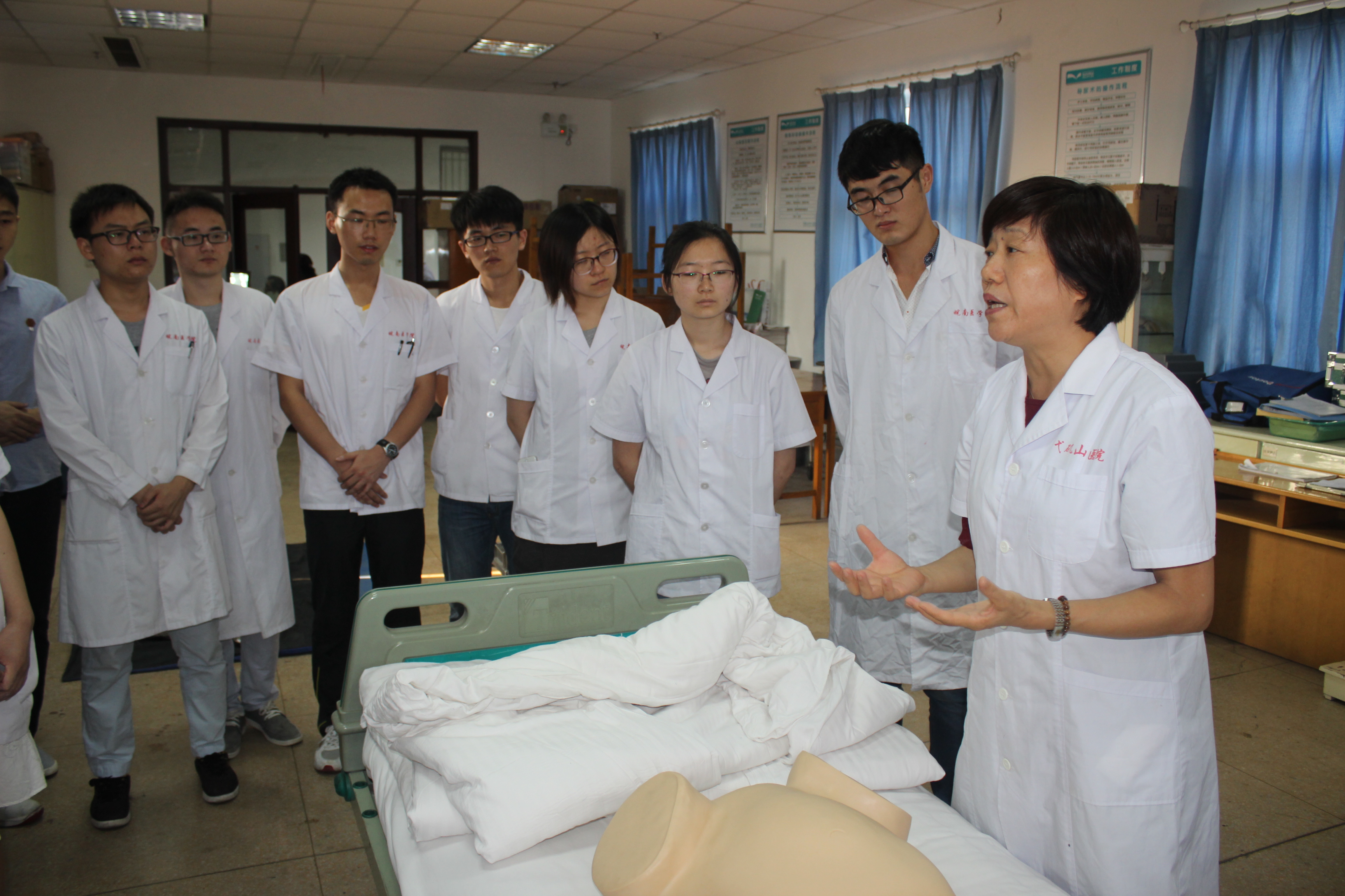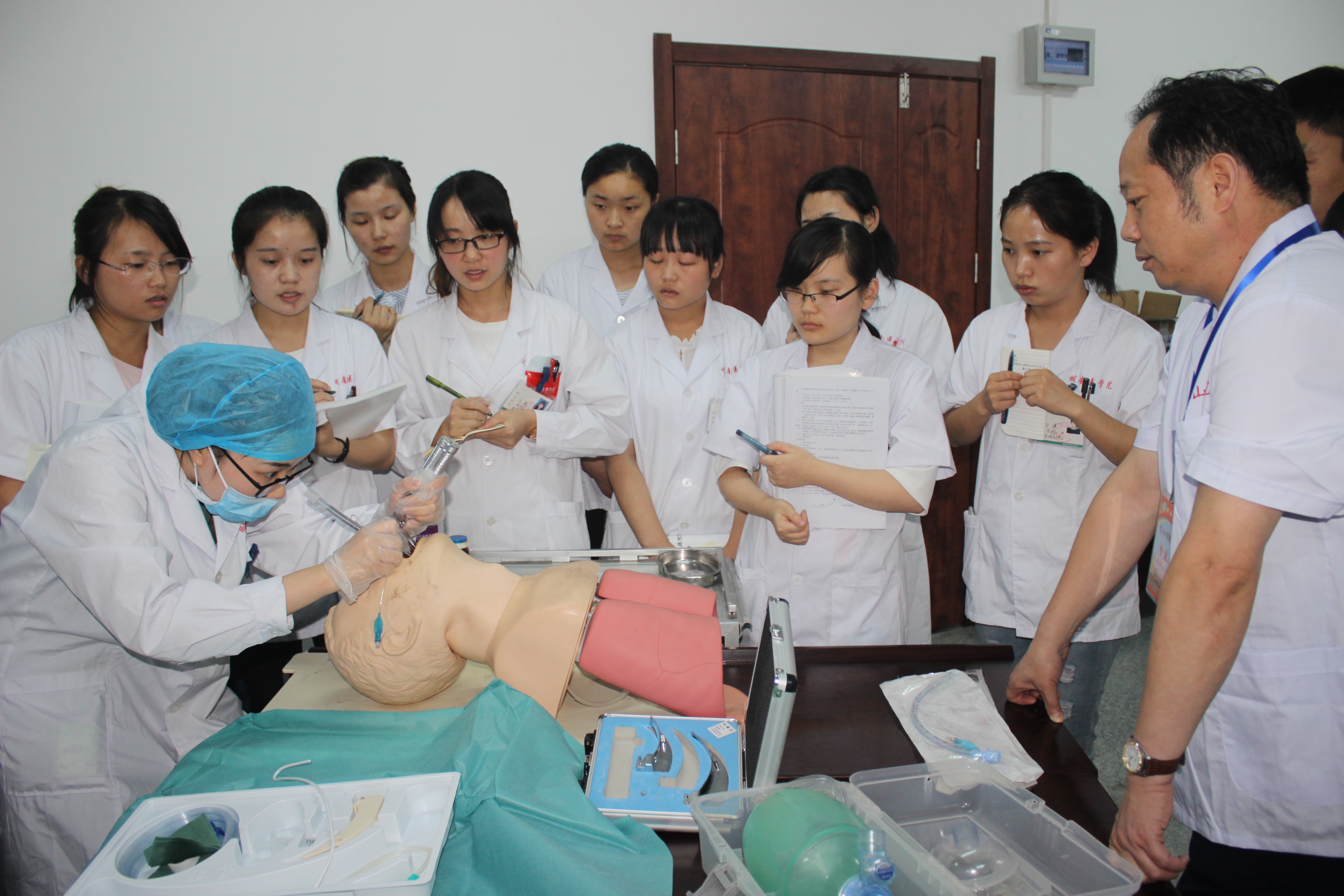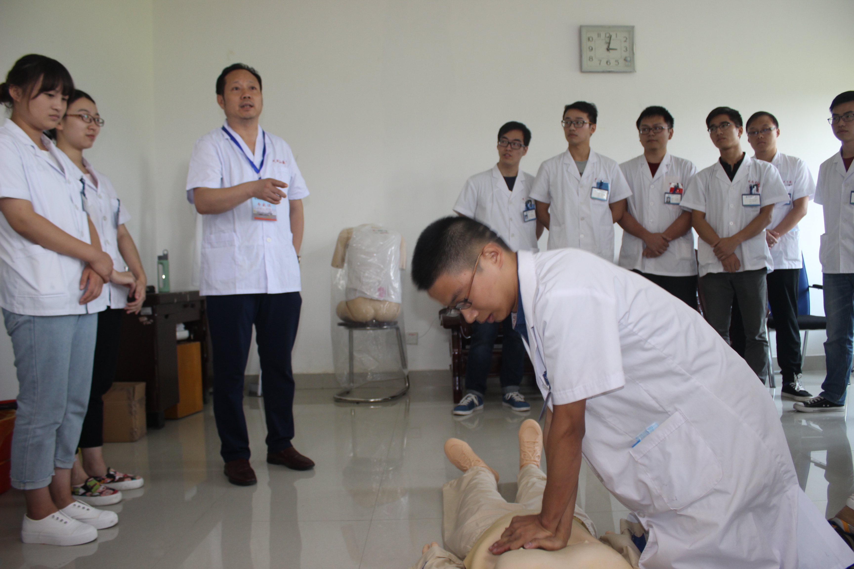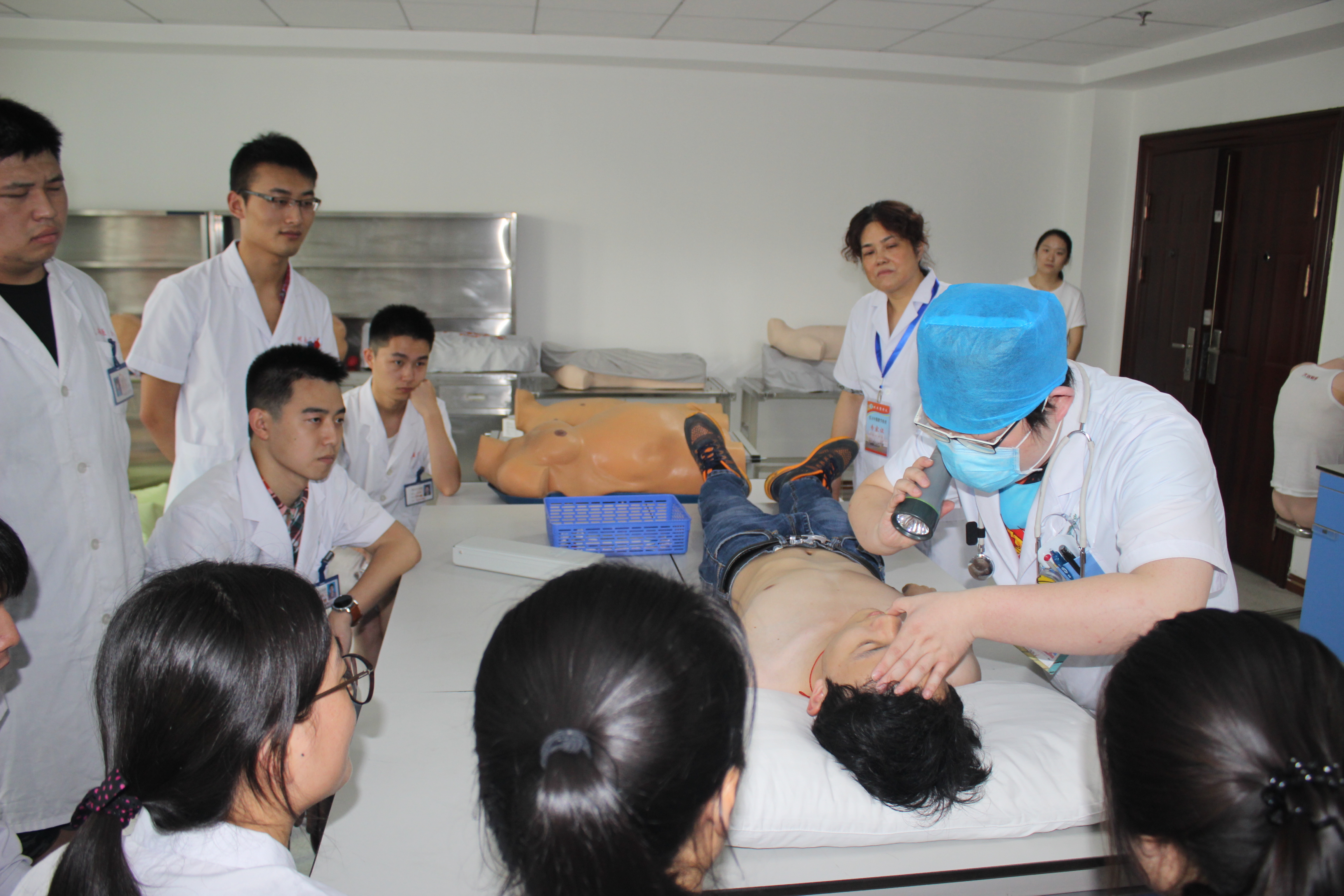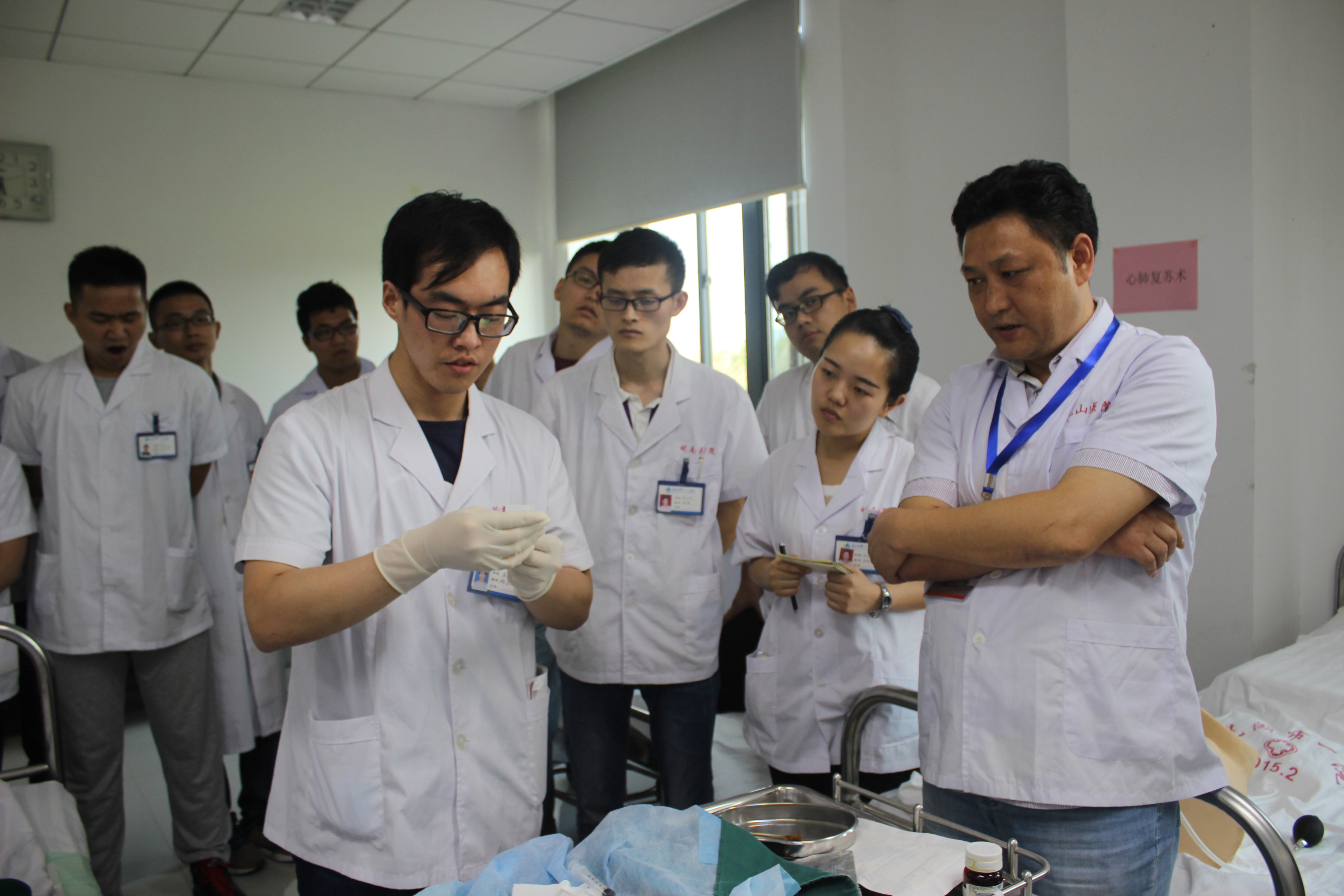 二、技能操作考核:包括全身系统体格检查、心肺复苏术、气管插管术、产科四部触诊法和骨髓穿刺术等五项临床基本技能操作考核。在考核现场,专家们随机抽查某一位实习生一边叙述,一边操作,针对员工操作不规范或错误之处,随时纠正并认真示教,强调该项操作的适应症和禁忌症,使每一位在场的实习生深切感受到规范地临床技能操作的重要性,认识到自己的不足和存在的问题,同学们纷纷表示在今后的实习工作中要补缺补差,精益求精,决不辜负专家们的谆谆教诲。