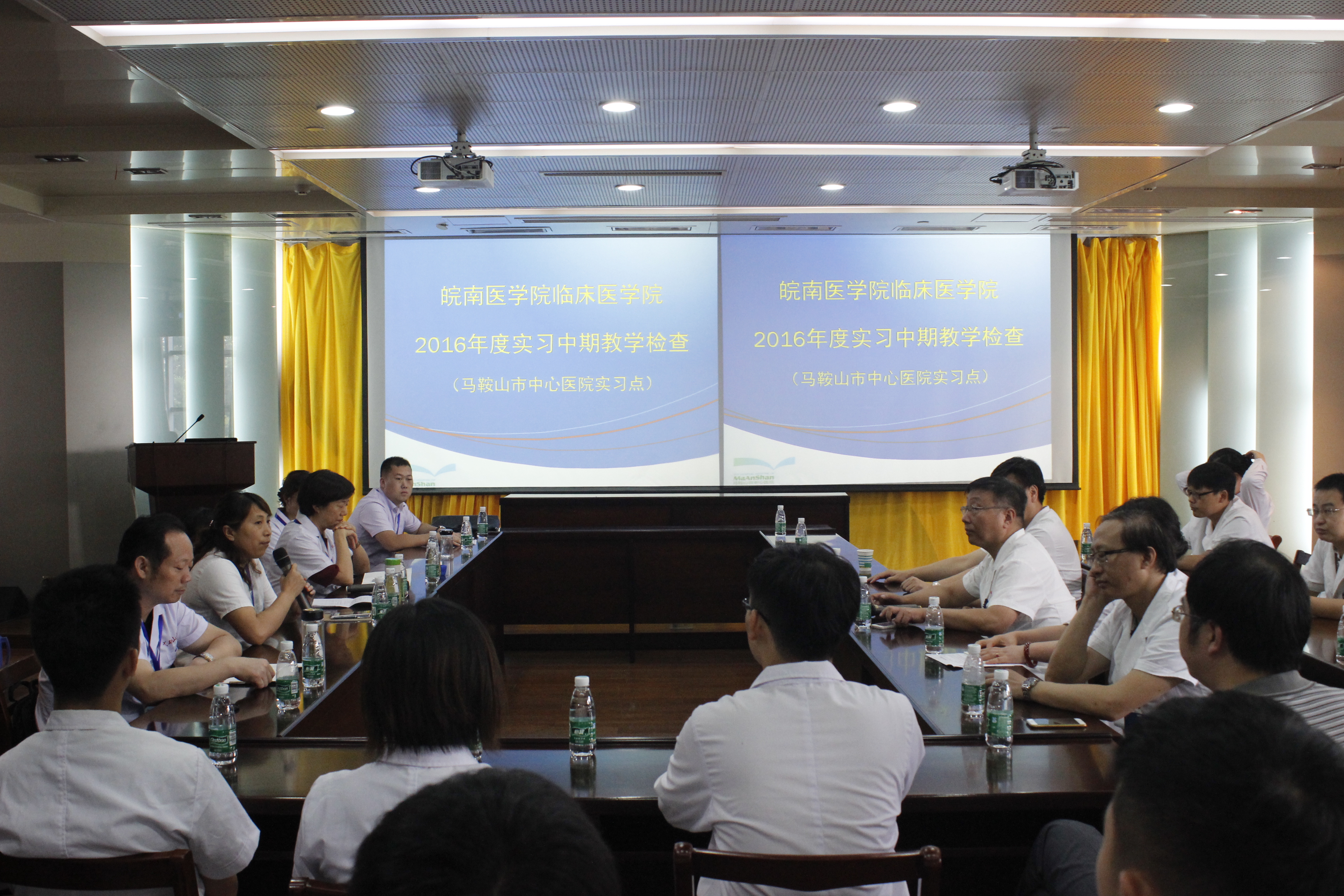 检查组每到一所医院,首先与医院分管领导及科教管理部门负责人会面和交流,认真听取院方关于临床医学专业员工实习带教工作的情况介绍,并就此次实习中期教学检查工作的意义、程序及内容进行沟通协商,确保整个检查工作紧张有序地进行。