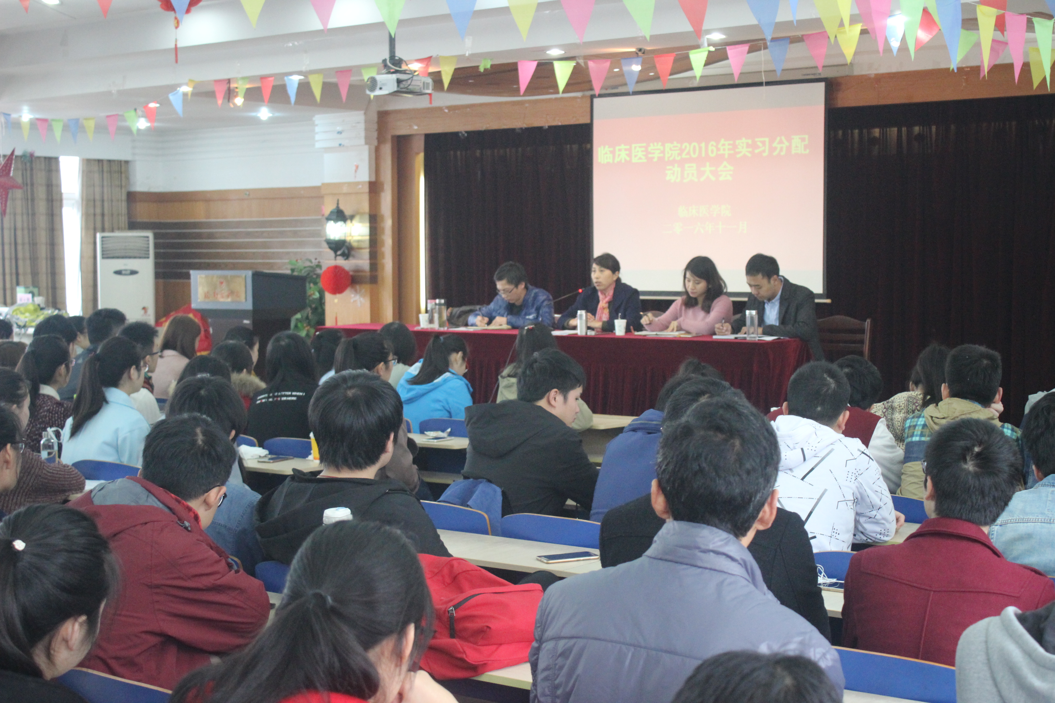 为做好2013级临床医学专业毕业实习工作,伟德国际VICTOR1946于11月20日上午,在赭麓校区4号教学楼七楼报告厅召开2016年度实习分配宣传动员大会,伟德国际VICTOR1946副经理刘影、2013级辅导员以及全体在校员工、部分芜湖市临床公司员工参加了本次会议,会议由伟德国际VICTOR1946秘书王平主持。