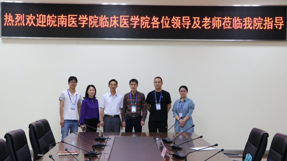 为开展2017-2018-2学期期中教学检查工作,进一步了解临床教学管理及运行情况,2018年5月4日,临床医公司党委书记刘群、副经理李曙,伟德国际VICTOR1946教学督导组组长钱大青、教学秘书王平,以及2014级辅导员白桂峰、2015级辅导员汪楠楠等人,赴芜湖市第一人民医院、芜湖市第二人民医院开展教学走访工作。