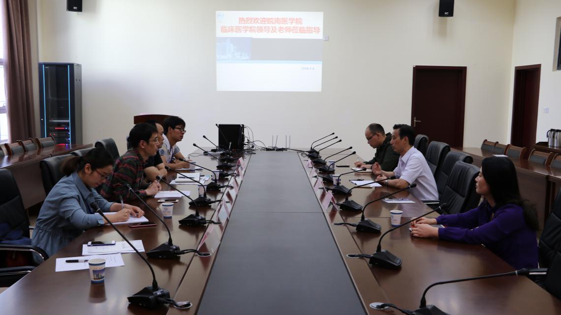 下午2:00,刘群等一行6人来到芜湖市第一人民医院继续开展走访工作,芜湖一公司党委副书记、经理凌云熹代表院方对来访人员表示热烈欢迎。现场听取科教科关于临床教学工作的PPT汇报后,刘群对芜湖一院在临床教学工作方面给予的高度重视和不懈努力方面表示感谢,李曙和钱大青分别向医院反馈了员工座谈会上反映的几点问题,并建议医院进一步做好教学档案的归类整理工作,进一步加强授课教师的教学技能培训,更好地迎接本科教学工作审核性评估。