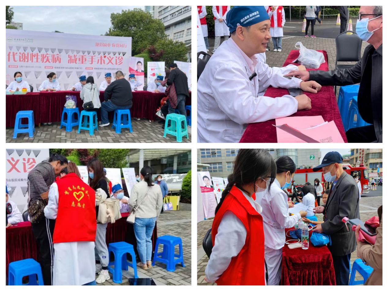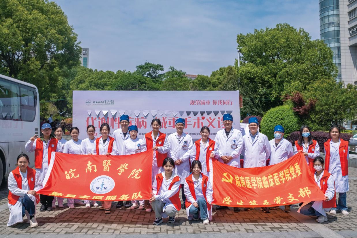 5月11日上午,党支部组织8名入党积极分子前往弋矶山医院,协助胃肠外科一开展“世界防治肥胖日”代谢性疾病减重手术义诊活动。活动中,胃肠外科减重代谢专家夏亚斌主任为胖友们制定专业的个体化减重手术治疗方案,志愿者们则为前来咨询的群众免费提供测血压、测血糖、BMI及人体测量等专业诊疗服务,指导大家科学减重、慢病预防、运动锻炼、改变不良生活习惯等。