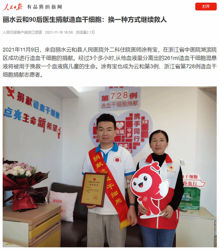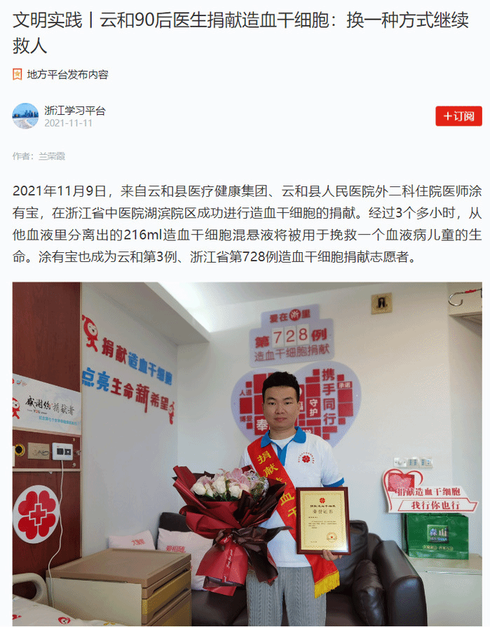 采集结束后,涂有宝告诉记者:“作为一个普通人,我觉得我很幸运,能在茫茫人海中用自己的血液去让另一个生命获得新生;作为一名医务工作者,我觉得这只是换一种方式在挽救生命,去实现一个白衣战士的使命;作为一名入党积极分子,我觉得这是我应尽的义务,努力为人民群众办一点实事。”