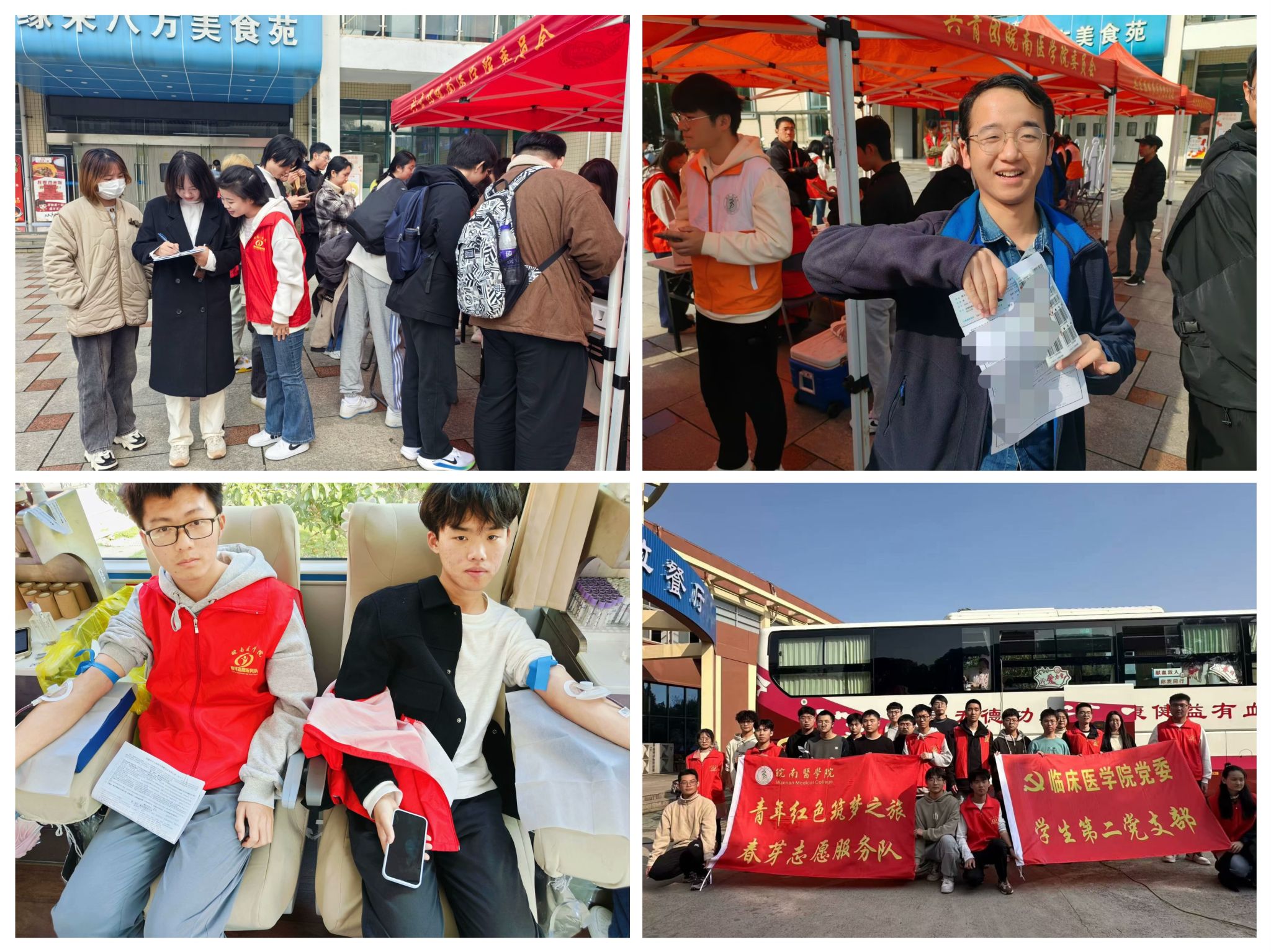 热血暖冬,春芽同行。支部积极发挥党建引领作用,推动“热血春芽”计划有序推进,协助开展“献血车进校园”活动,组织入党积极分子在献血现场协助工作人员完成个人信息登记、征询、初筛等献血准备环节;重视宣传,组织支部广大师生参与无偿献血。据统计,2024年支部共有109人次献血,累计献血量达29700cc,在校园内营造了医员工挽臂献血的良好氛围。