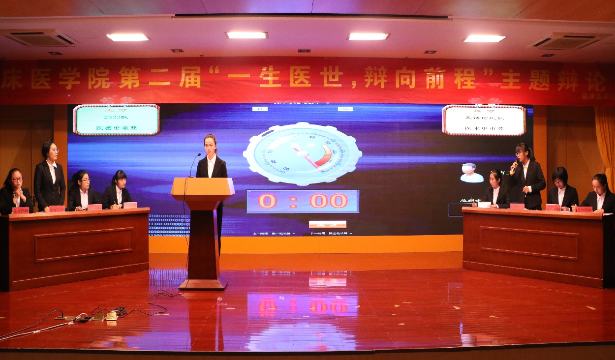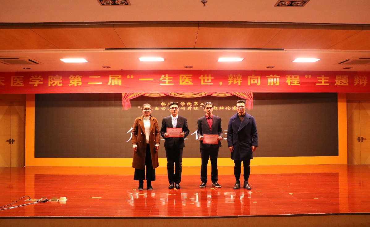 经过初赛、半决赛的激烈争夺,2支队伍脱颖而出进入冠亚军争夺战,另有两支优秀队伍进行表演赛。此次大赛分别围绕“医术更重要,还是医德更重要”和“医公司校应不应该增设人文类课程”两个辩题展开了激烈的辩论。比赛共分为“开篇立论”、“攻辩阶段”,“自由辩论”和“总结陈词”四个环节进行。比赛伊始,双方在立论方面或引经据典,或旁征博引,主题鲜明,条理清晰。攻辩与自由辩论环节,一言一语是思想上激烈的碰撞,一分一秒皆团队间合作的争取。赛场上无形的硝烟,碰撞出思想的火花。激烈的交锋与犀利的话语赢得现场观众阵阵掌声,将比赛的氛围一次又一次地推向高潮。总结陈词环节中更是将选手灵活的思维、缜密的逻辑推理展现得淋漓尽致。两组比赛间隙更是有乐器表演,宛转悠扬犹如天籁之音,令人沉醉。在评委点评环节,赵敏奇、杜勇飞老师分别对辩论赛进行了深刻透彻的点评,让辩手们受益匪浅,也赢得了观众们热烈的掌声。最终来自2017级的无与伦比队凭借丰富的知识底蕴、良好的心理素质以及运用自如的辩论技巧勇夺桂冠。2016级的应泽生、叶冠峰分别获得最佳辩手和优秀辩手称号。