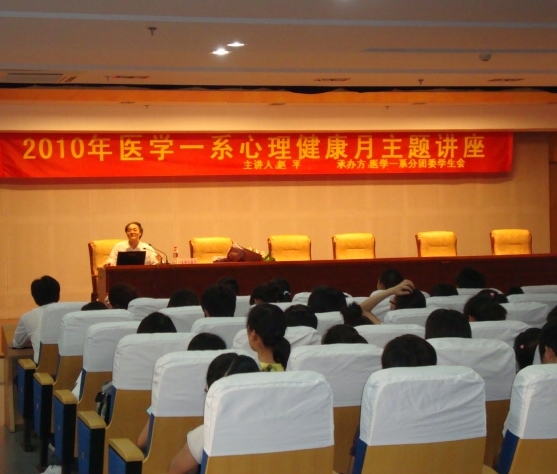 5月25日下午6点,医学一系团委、员工会邀请安徽省模范教师、安徽师范大学政法公司教授、硕士生导师赵平博士,在南校区图书馆三楼学术报告厅举办了以“第四种情感你有没有----异性交往的价值与艺术”为主题的心理健康教育讲座。讲座由医学一系党总支副书记韩军主持。员工处副处长崔晓霞、系团委书记吴金庭、各年级辅导员及400余名员工聆听了讲座。