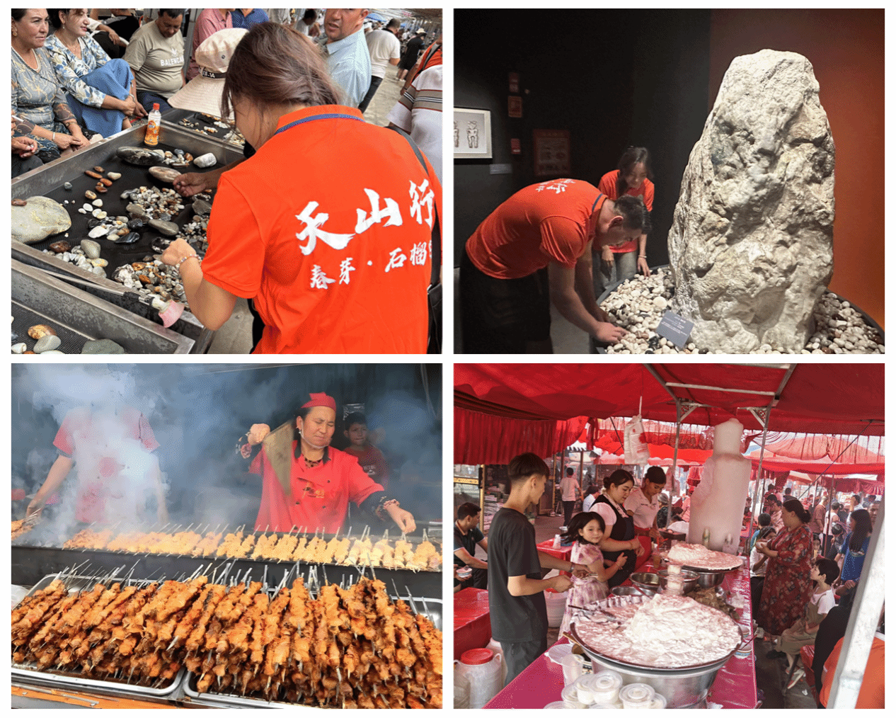 8月12-15日,实践团走进和田玉博物馆、新疆和田玉石交易中心,精美的玉石展品诉说着古老的历史与文化传承。随后,实践团来到墨玉县大巴扎,丰富多样的商品展现出浓郁的地域风情。实践团成员们认真观察、仔细记录,与当地商户和游客交流,深入了解当地的经济发展与文化特色。同学们将把这些宝贵的调研成果转化为推动地区发展的智慧力量。