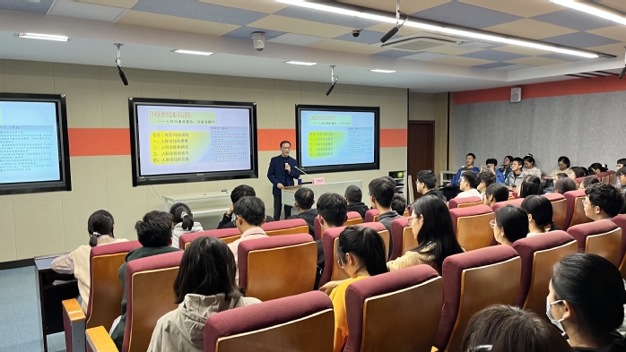 10月26日,刘新民教授作题为“如何交往更有效”专题讲座,讲座由2021级辅导员汪昱娟主持,2021级全体班干现场聆听。刘新民首先阐述了人际交往要素及模式,强调了人际交往的重要性。随后他介绍了人际交往的谈话技巧和态度,并以名人事迹为例,帮助同学们正确了解自己的情绪,正视自身在人际交往与沟通中存在的问题。通过“如何介绍别人”“如何打电话”“如何握手”等生活中常见的问题,深入浅出地指导同学们正确进行人际交往和沟通。
