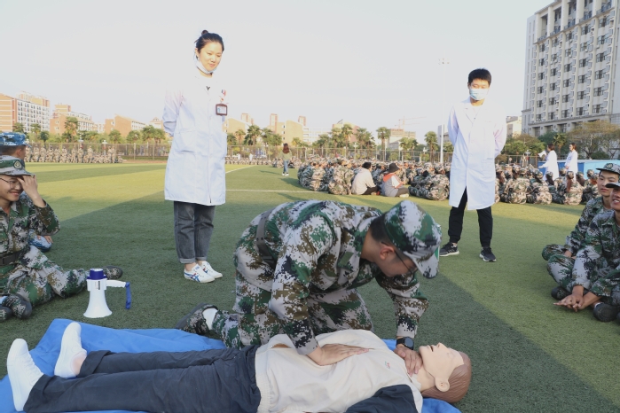 为进一步推进“早临床、早技能”的教学理念。10月12日,伟德国际VICTOR1946组织临床技能教学团队深入校园,针对伟德国际VICTOR1946正在军训的700名新生开展“心肺复苏”培训。培训团队由一附院临床教师、住培学员和临床医学实验实训中心教师组成。