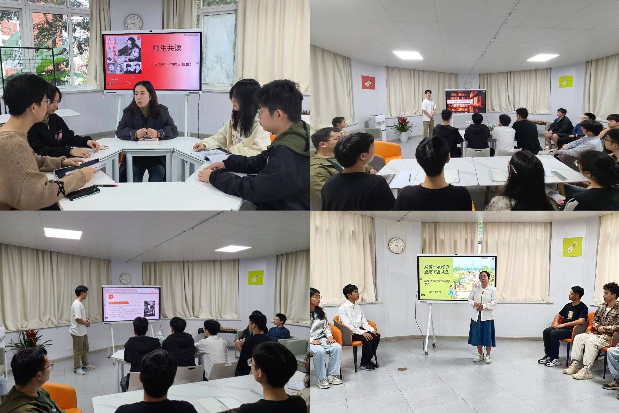 “共读一本好书”系列活动分为师生经典诵读和好书分享两种形式。在师生经典诵读第一期活动中,老师和同学们对经典书籍《历史转折中的人和事》进行诵读,并分享了自己的读后感悟;好书分享活动目前已进行三期,同学们共同分享了《习近平的七年知青岁月》《大国脊梁》《旗帜的力量》三本书籍,并从不同角度交流所学、所思、所获。