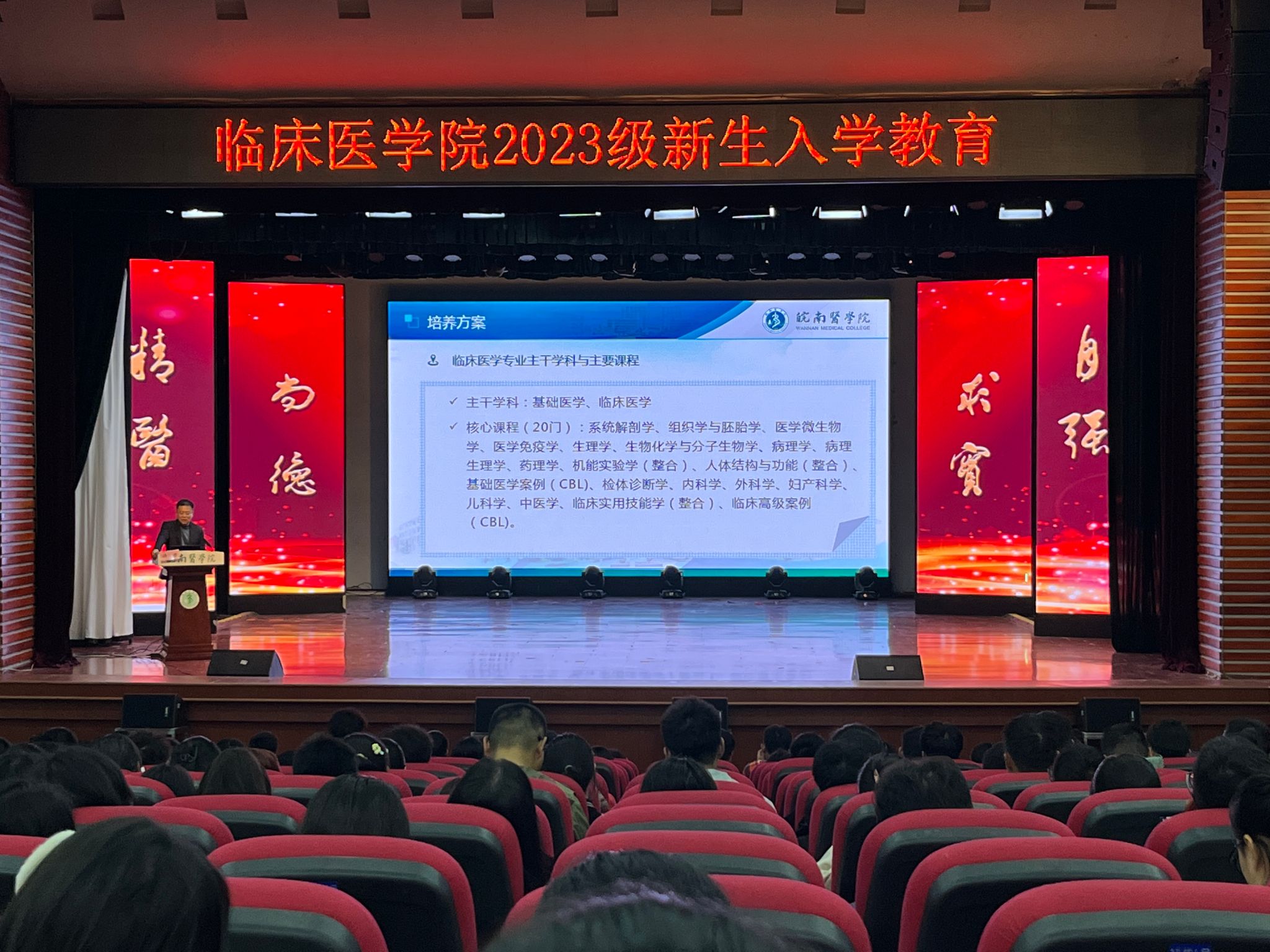 傅万山以“立足新起点 砥砺新征程”为题,重点向同学们介绍了现代医学和现代大学的起源、大学的五大职能、如何做好一名老员工,教育引导新生厚植爱国主义情怀,增强对中国共产党的领导和中国特色社会主义的思想认同、情感认同、价值认同,并引导全体同学尽快适应老员工活。他对同学们提出五点希望:一是养成良好习惯,学会自律自控;二是锤炼意志品质,塑造个性特质;三是学习掌握知识,不断提升自我;四是做好知行合一,注重实践锻炼;五是树牢法律意识,学会保护自己。