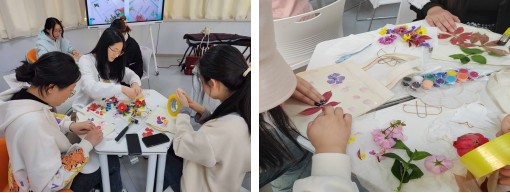 拓花草,染春天。“草色锤染身上衣,映红犹闻彩花香。”历经千年历史变迁,植物拓染已成为非遗名录中的一项特殊技艺。活动伊始,在工作人员的指导下,同学们将明矾浸泡好的花草摆放在空白帆布包上,粘贴牢固后用拓染锤反复敲打,使植物汁液渗入布料之中,从而得到一朵朵、一簇簇“彩印”的花草。同学们在体验实践的过程中充分发挥自身的主观能动性,感受美、创造美,拓染下自己对于春天的美好期待。