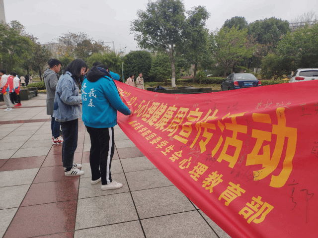 活动共分为心理知识海报展览、心理知识有奖问答、“倒着说”互动游戏和百人签名活动四个环节。海报展览环节通过展览心理健康知识及常见心理问题的解决方法,帮助同学们了解自身心理健康状况;在知识问答和互动游戏环节,同学们积极参与,踊跃抢答,现场气氛热烈;百人签名时,同学们在心理健康宣传横幅上踊跃签名并写下心灵寄语,充分表达了自己对心理健康成长的热切期望和美好祝愿。