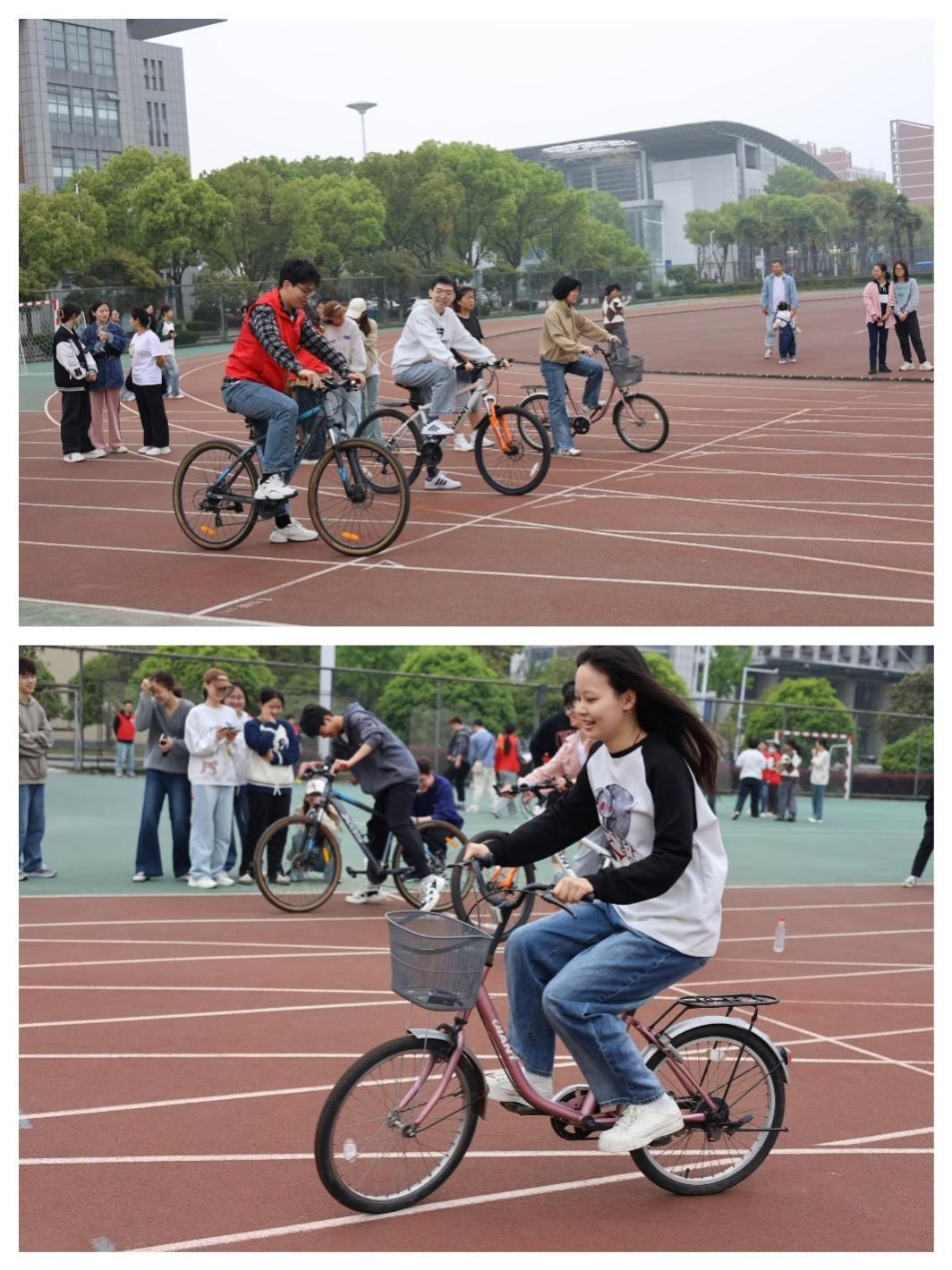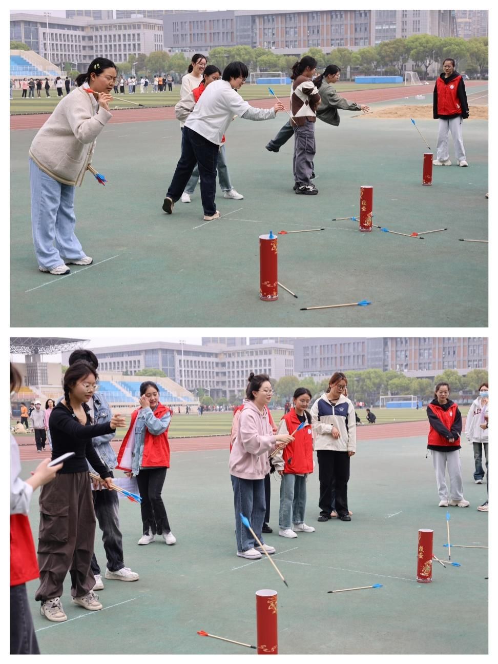 本次趣味运动会比赛项目丰富多样,共设置“方格毽子”“投壶”“自行车慢骑”及“简易保龄球”四个比赛项目,每个项目都充满了趣味性和挑战性,让参赛者们在轻松愉快的氛围中感受到运动的魅力。青春与活力飞扬,热血与激情碰撞。方格毽子比赛中,选手脚下生风,彩色的羽毛毽子在空中上下飞舞;投壶比赛中,同学们在竞技的同时感受传统文化的魅力;参加自行车慢骑的选手在赛道上不慌不忙,比拼着各自的耐心和耐力;简易保龄球比赛中,选手们仔细瞄准,奋力投球,看似简单的一掷却也能锻炼身体的协调性。比赛现场掌声、笑语声和欢呼声此起彼伏,洋溢着欢乐的气氛。