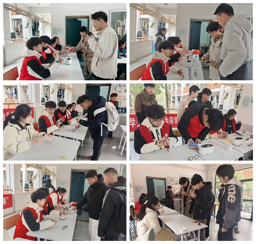 专业清洁,明晰“视”界。活动现场,志愿者借助专业工具与清洗液,为同学们的眼镜进行深度清洁。经清洁后的眼镜焕然一新,同学们佩戴后视觉清晰度显著提升。同学们纷纷称赞活动贴心,充分考虑到了日常生活中的细微需求。