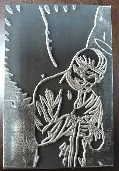 作品《橡皮章雕刻-抗疫天使》