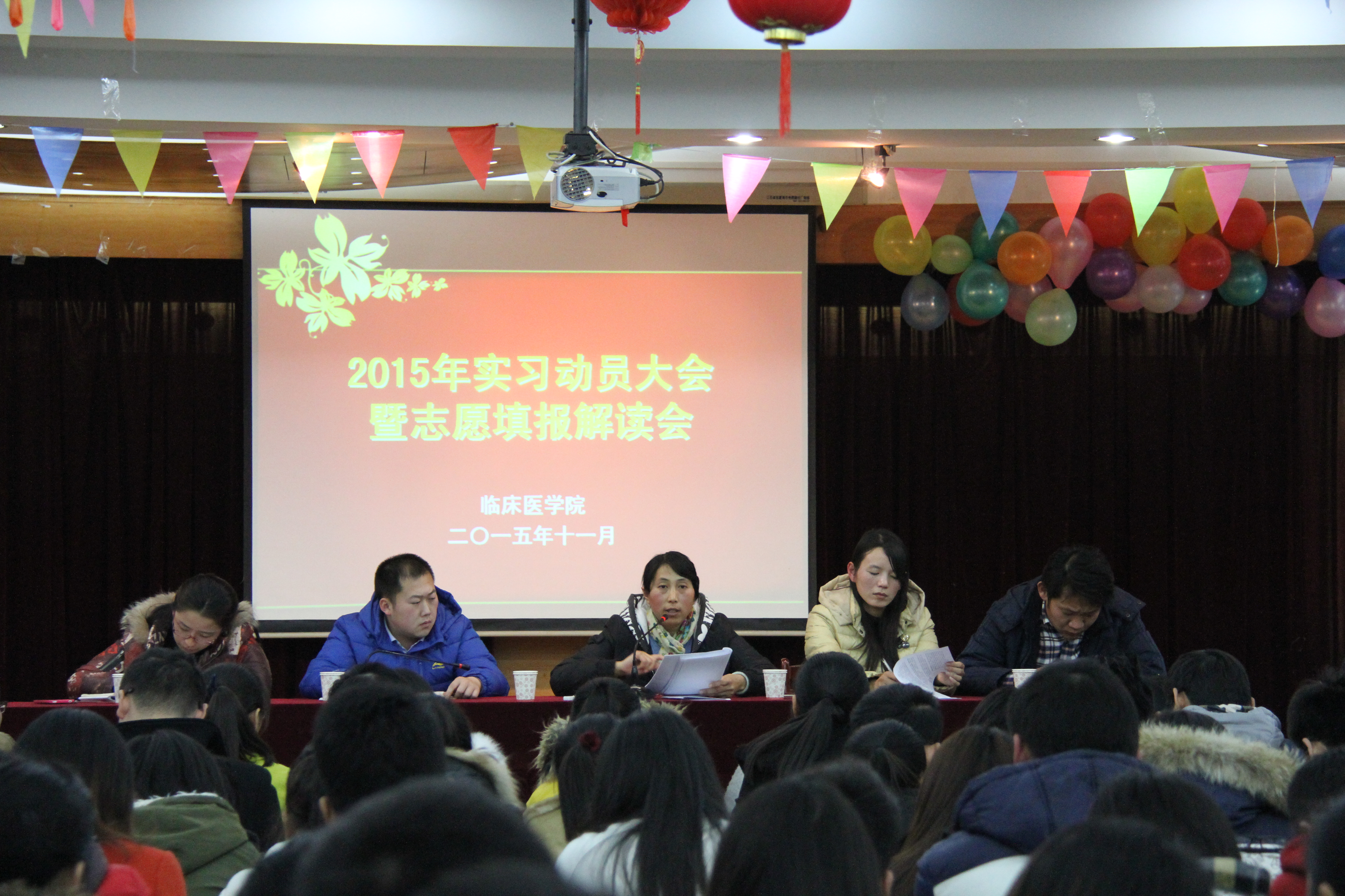 11月27日晚,伟德国际VICTOR1946在赭麓校区4号教学楼七楼报告厅召开2015年实习分配动员大会暨志愿填报解读会,会议由伟德国际VICTOR1946教学工作秘书王平主持,伟德国际VICTOR1946副经理刘影、2012级辅导员以及全体在校员工、部分芜湖市临床公司员工参加了本次会议。