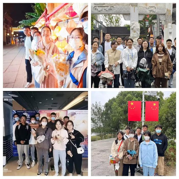 国庆期间,2022级22个班级分别组织开展了一系列班级团建活动。同学们一同前往了芜湖古城、松鼠小镇、十里江湾公园、雕塑公园、博物馆等芜湖市标志性场所,深刻感受到芜湖高质量发展的新变化。