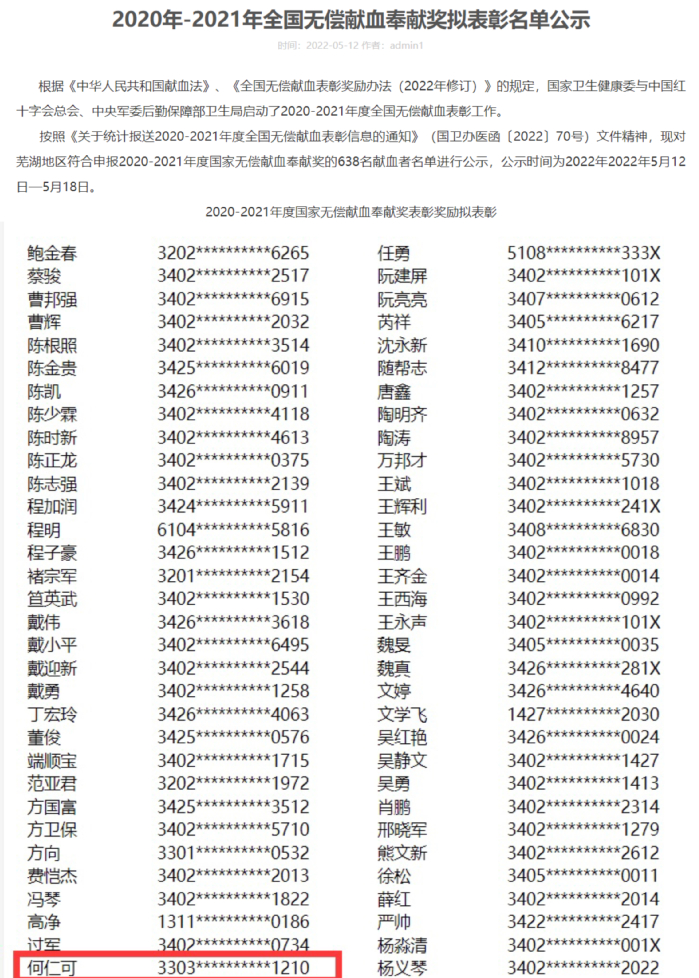 何仁可荣获“全国无偿献血奉献奖金奖”