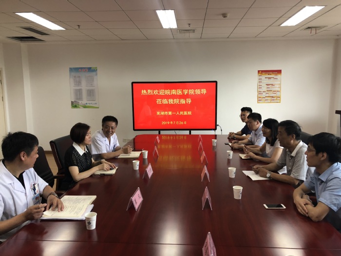 座谈会上,芜湖市第一人民医院经理丁百静、副经理水心富,第二附属医院副经理胡宏伟,芜湖市第二人民医院纪委书记张仁虎,皖南康复医院经理林丙来及各单位科教科负责人分别介绍了医院的发展近况及在教学和员工管理方面新的举措和成效。