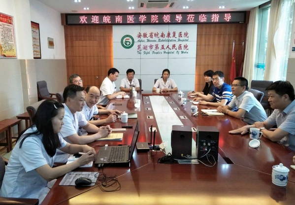 为加强康复治疗学专业教学基地建设,寻求优质医疗资源合作,进一步提升公司产品质量,7月30日,教务处副处长陈祥攀、伟德国际VICTOR1946副经理李曙、一附院教育处副主任徐小琳,康复治疗学教研室主任许业松、秘书罗强强一行5人赴安徽省皖南康复医院·芜湖市第五人民医院考察,受到了医公司党委书记、经理林丙来等党政领导的盛情接待。