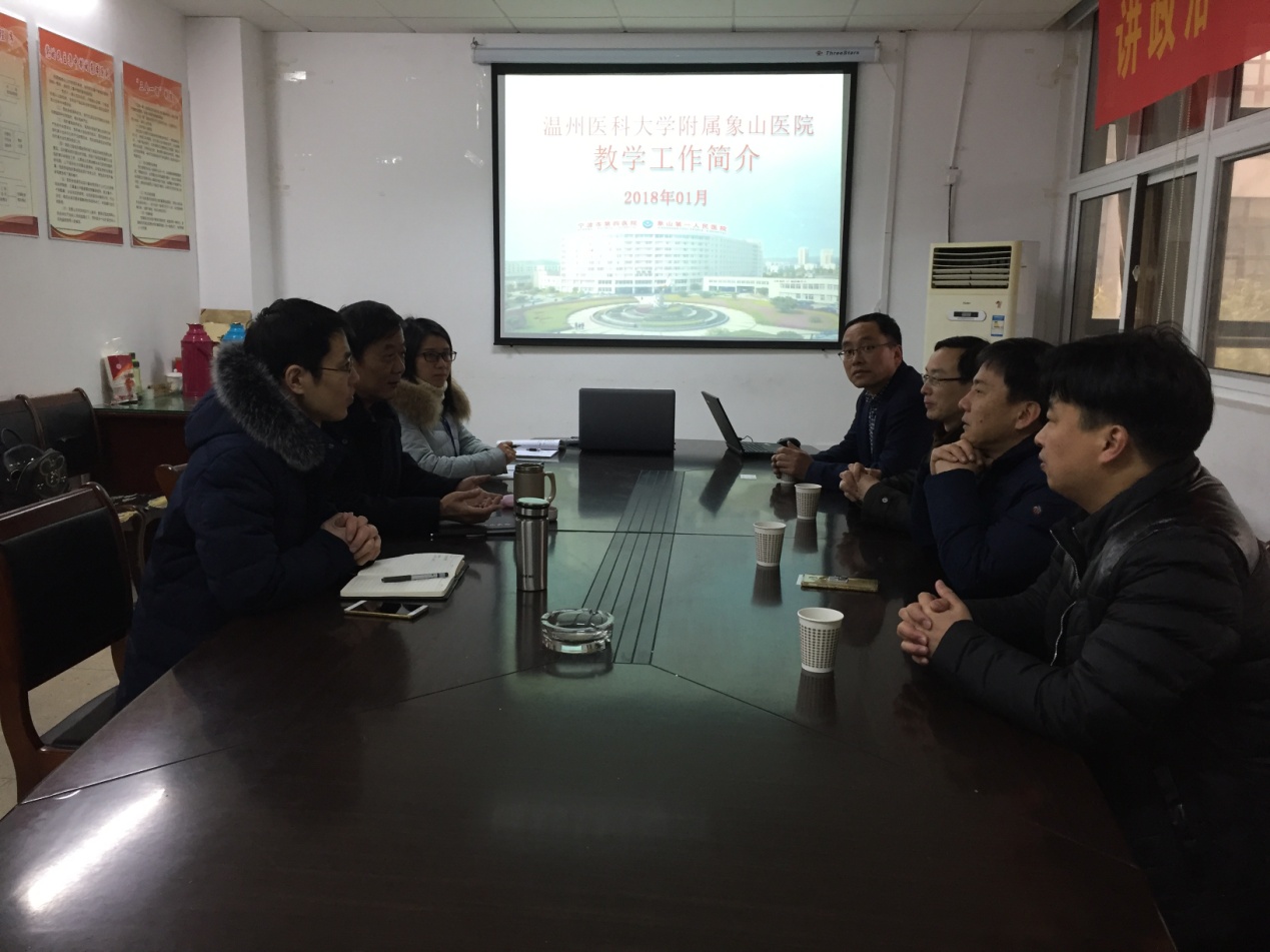 1月7日上午,浙江省宁波市象山县卫计局党委副书记、副局长史美德,象山县第一人民医院副经理谢龙腾,象山县第二人民医院经理孙忠敏以及象山县第二人民医院经理助理邱沿波等一行4人来公司伟德国际VICTOR1946交流工作。临床医公司党委书记刘群、副经理李曙、教学工作秘书、员工工作秘书及2018届毕业班辅导员,在公司会议室热情接待了来宾。