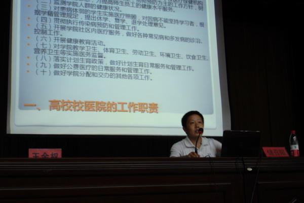 随后,韩军对新生们进行了校史及“如何尽快适应老员工活”的主题教育,介绍了医学一系光荣的历史业绩及杰出员工代表,激发新生们的爱校之情,鼓励大家向员工们学习,向榜样学习,创造出属于自己的辉煌;他还就如何尽快完成角色转变,适应大学学习、生活方式,谈了自己的建议与意见。之后,储召阳结合卫生健康知识、传染病防治及医疗保险报销等问题,同大家进行了交流,指出同学们要做好自身防护,远离传染源,提高身体素质,做一个全面发展的老员工。崔晓霞结合公司奖、贷、助、勤等政策,向同学们介绍“绿色通道”、医疗保险、助学贷款、勤工助学等具体项目的办理程序及注意事项,鼓励同学们自立自强,以优异的成绩回报社会、回报国家。蒋韶明就学籍管理等方面进行了教育,介绍了公司学籍管理方面的一些规章制度,从而帮助同学们明确学习、生活中的目标和一些注意事项。周黎明结合案例就如何做好安全防范工作进行了介绍,指出同学们要提高安全防范意识,注意保护好人身与财产安全,共同营造和谐、安定的校园环境。 最后,在周黎明老师的指挥下,830余名新生开展了现场消防安全疏散演练。