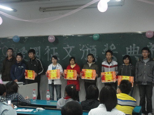 2010年11月17日,医学一系在西教学楼102教室举办2010级爱国主义征文活动总结大会暨颁奖仪式。2010级辅导员李桂芳、2008级、2009级、2010级员工会主席、获奖员工及部分员工代表参加了会议。