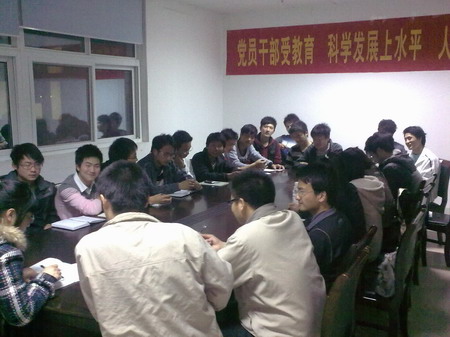 3月21日晚6:30,医学一系2008级辅导员韩波在系部楼西二楼会议室召集各班级班干,就安全年活动进行布置。 会议传达了公司有关安全年活动的文件精神及系部辅导员例会会议精神,结合08级年级实际,拟定了2010年08及全年安全教育工作计划。会议就新一期党校学员选拔培训进行学前动员,号召全体员工向沈浩同志学习,严于律己,用于奉献,积极向党组织靠拢,争取早日加入党组织。最后,各班班长积极发言,汇报班级情况,表示新学期会继续加大班风、学风建设,争创优秀班级、优秀团支部。