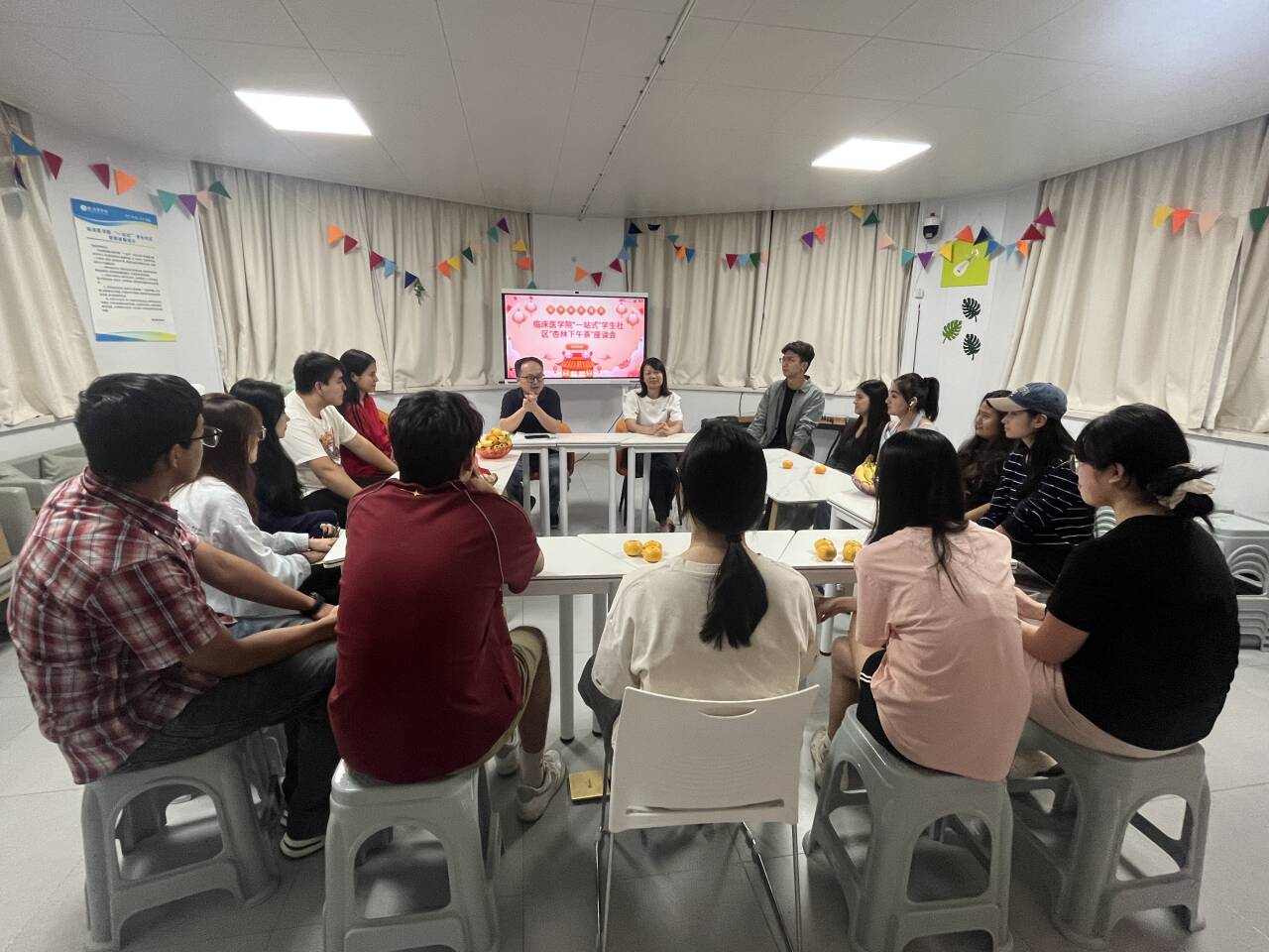 中秋与国庆双节将至,为让留校员工在校园中感受到节日的暖意与公司的关怀,9月30日,伟德国际VICTOR1946在“一站式”员工社区精心组织开展第六期“杏林下午茶”活动。公司党委书记方基勇、党委副书记陶香香、各年级辅导员与假期留校员工围坐一堂,在轻松温馨的氛围中共话佳节、共叙情谊。