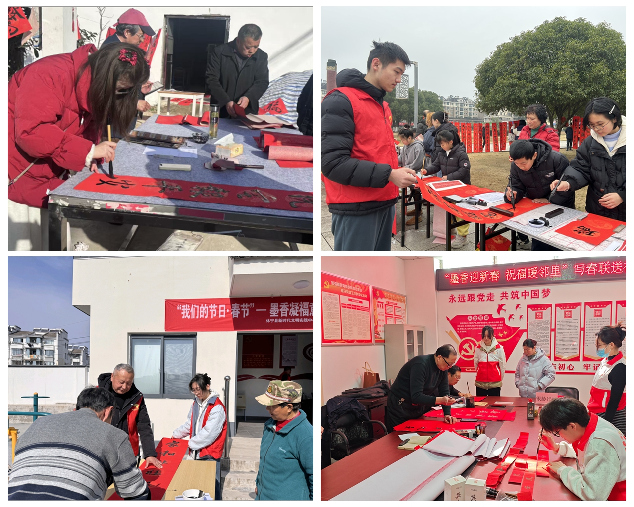 春节将至,年味渐浓。“春芽”志愿服务队走进家乡社区,积极协助当地社区居委会筹备与组织新春文化活动。红纸翻飞间,墨香四溢中,同学们维持着现场秩序,引导居民有序参与。同时,精心布置活动场地,悬挂灯笼、张贴福字,营造喜庆祥和的节日氛围,更有志愿者走上舞台担任主持,用热情感染观众,传递新年祝福。通过举办一系列贴近民心、富有年味的民俗活动,不仅搭建起邻里间社区共建的桥梁、纽带,也丰富了居民们的精神文化生活,让传统习俗薪火相传,让优秀文化熠熠生辉。