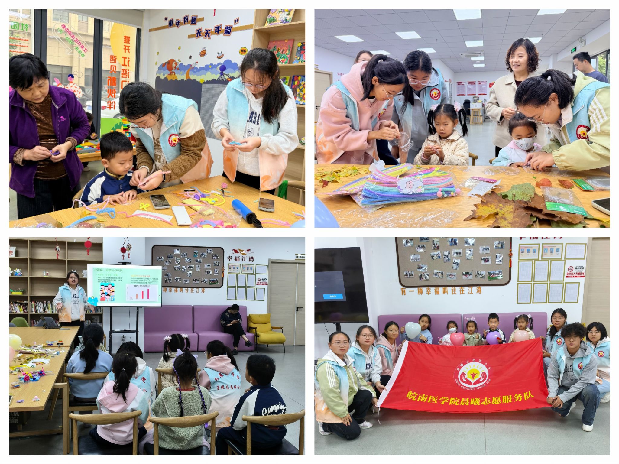 江湾社区传健康,手作趣享架心桥。11月9日,志愿服务队走进江湾社区,为辖区小朋友带来健康小讲座与趣味手工活动。志愿者结合专业知识,用通俗易懂的语言讲解健康饮食、眼睛保健等常识,并指导小朋友制作扭扭棒手作与落叶书签,在动手实践中传递快乐,播撒健康理念,搭建起高校与社区的温情桥梁。