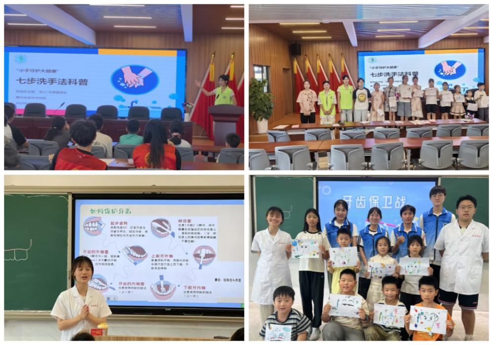 凝聚专业“服务力”,坚守医者初心践行使命担当。7月21日至8月27日,志愿者们于芜湖市、蚌埠市、汉中市等地开展七步洗手法、保护牙齿科普活动,通过图文并茂的讲解、直观的视频演示、生动形象的示范等方式,深入浅出地讲解了洗手在预防疾病传播中的关键作用,并耐心细致地演示了七步洗手法、巴氏刷牙法的每一个环节和要领。孩子们在团队成员的带领下,兴致勃勃地跟着模仿学习,积极参与实践操作并绘制了相关手绘,现场气氛活跃热烈。