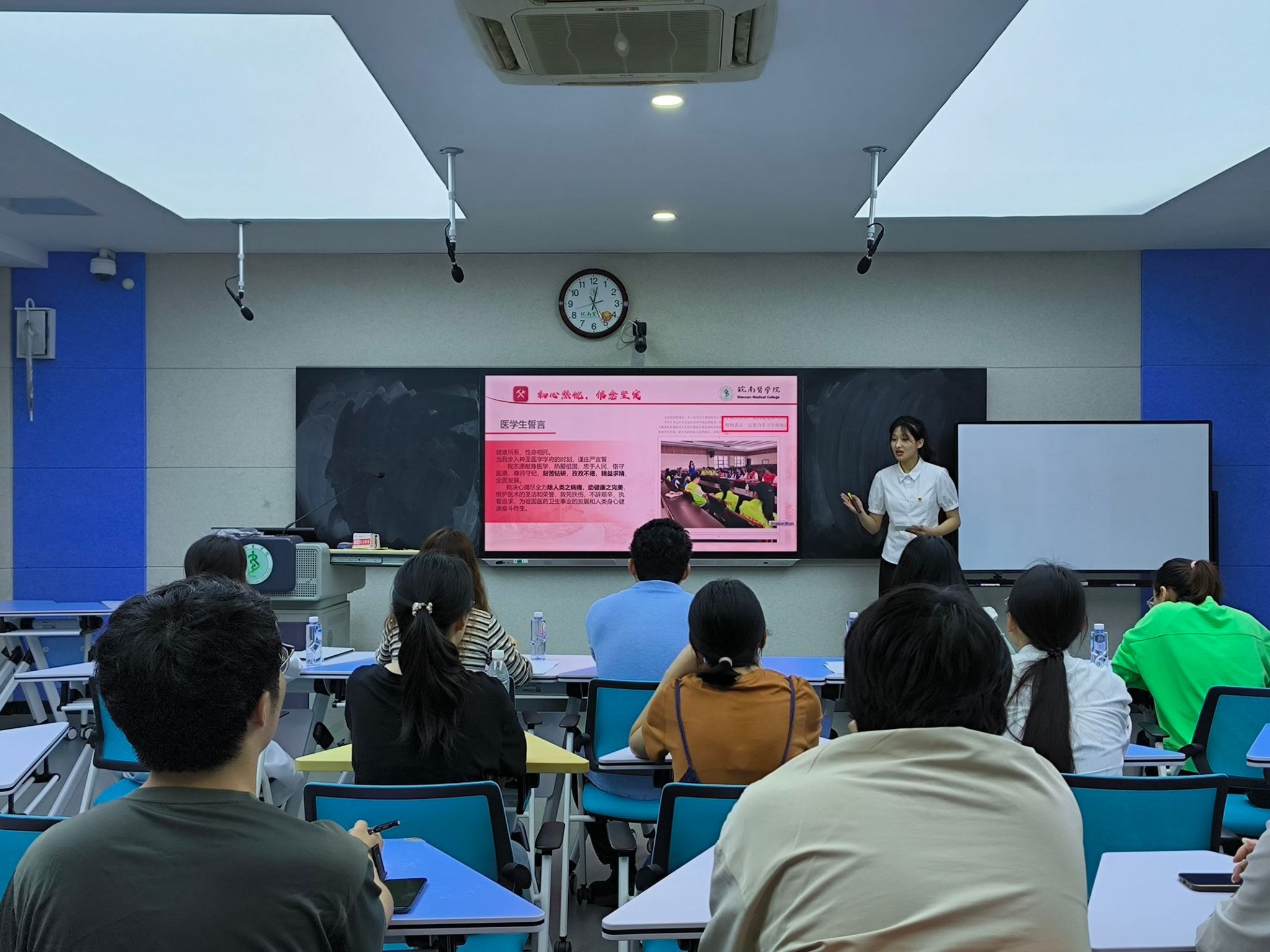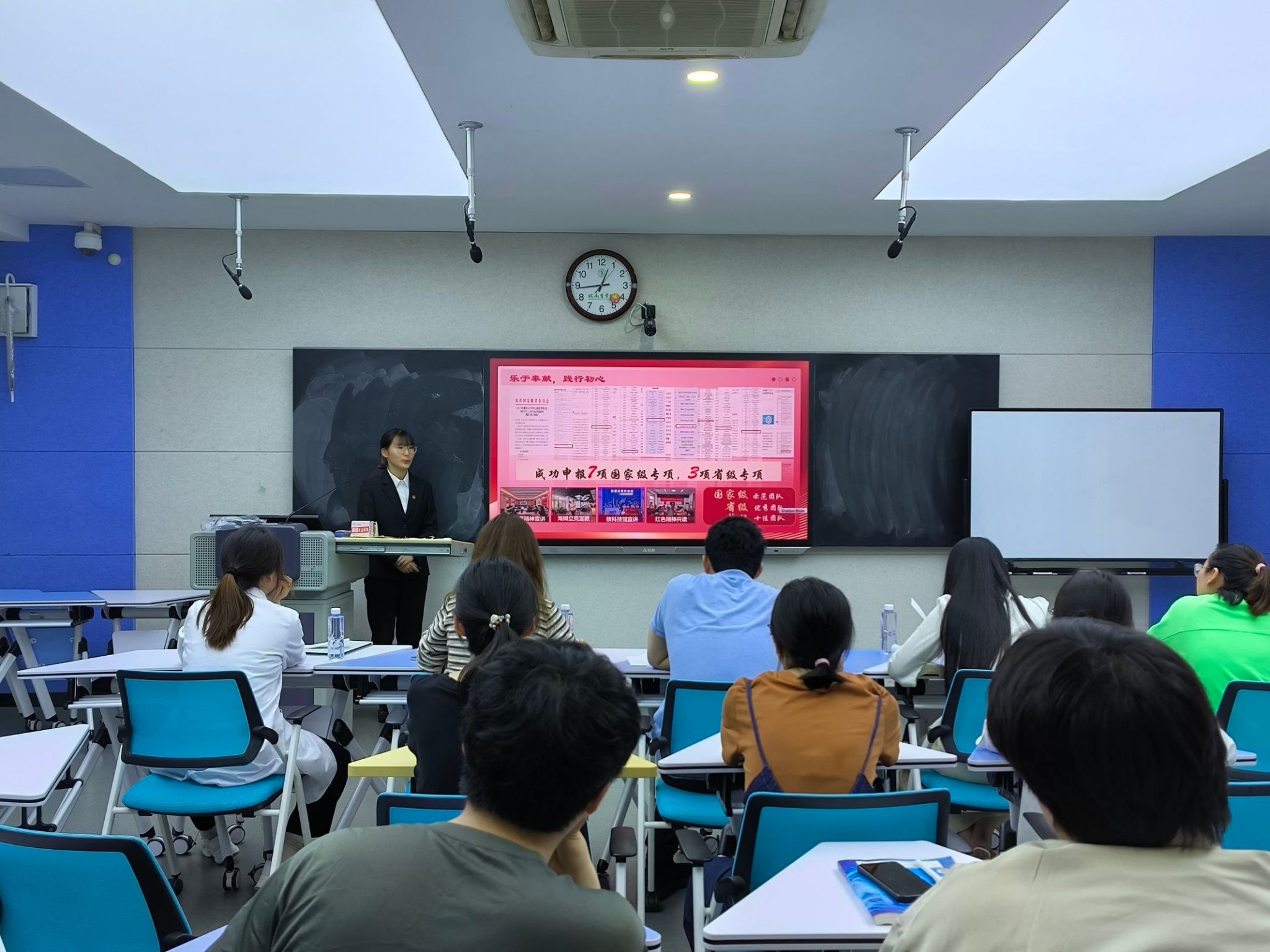 5月11日中午,伟德国际VICTOR1946在1号教学楼智慧教室开展“优秀学子”汇报展示会,8位员工个人分别从学风引领、文体活动、社会实践、科研竞赛、党员示范作用发挥等方面,从个人成长到专业技能等进行自我展示,分享了自己的学习历程,表达了继续前行、勇攀高峰,努力成为新时代合格建设者和接班人的决心。
