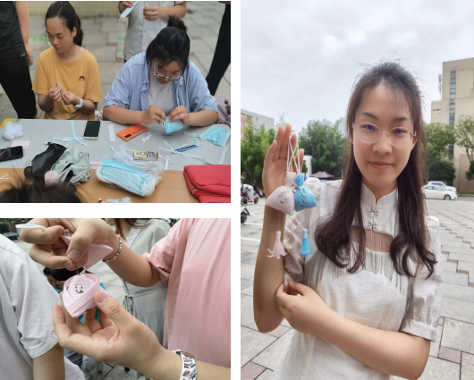 口罩助防疫,香囊送健康。端午节期间2020级开展DIY口罩中药香囊活动。炎炎夏日,精巧雅致的香囊承载着医药文化,散发着草本之香,兼具健康与文化双重功能的防疫香囊芳香避秽,外观雅致大方。同学们身佩清新雅致的香囊,散发沁人心脾的药香,成为传统佳节里别具一格的风景线。