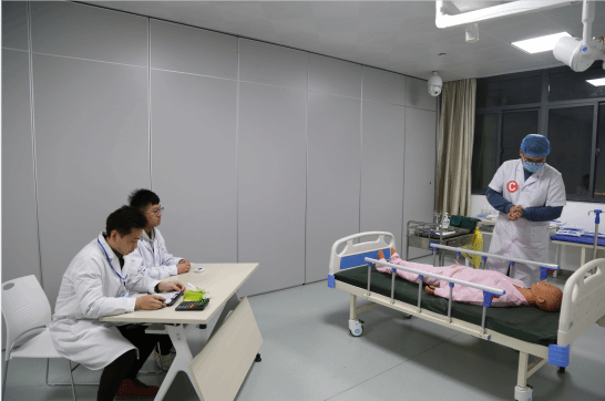 经过激烈角逐,2018级A队获团体一等奖,2019级B队获团体二等奖,2019级A队、2018级B队获团体三等奖,大赛同时决出单项考核奖三项:王沁悦获得心肺复苏术单项奖、袁成获得胃管置入术及导尿术单项奖。刘群在实训中心大数据中心观看了整个竞赛过程。