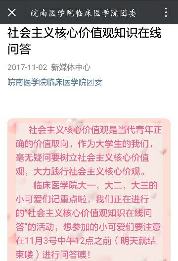 习近平总书记在北京大学考察时指出:“青年的价值取向决定了未来整个社会的价值取向,而青年又处在价值观形成和确立的关键时期,抓好这一时期的价值观养成十分重要。”为进一步弘扬和践行社会主义核心价值观,伟德国际VICTOR1946团委联合老员工手机运用价值及引导名师工作室依托学院团委微信公众号,于10月27日-11月7日开展社会主义核心价值观知识在线问答活动。