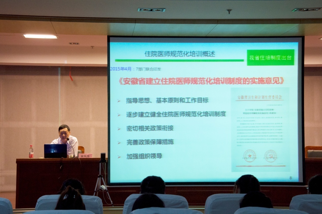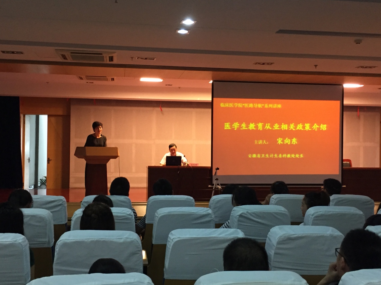 医路导航,梦想启程。为帮助临床医学专业本科生深入了解所学专业的人才目标、发展前景、就业方向和从业要求,激发员工对专业知识学习的兴趣和信心,6月23日上午10:00,伟德国际VICTOR19462014级团总支特邀安徽省卫生计生委科教处处长宋向东,在图书馆三楼报告厅举办了“医员工教育从业相关政策宣讲”。本次宣讲会由临床医公司党委副书记崔晓霞主持,公司全体辅导员和2014级、2015级逾400名学子到场聆听。