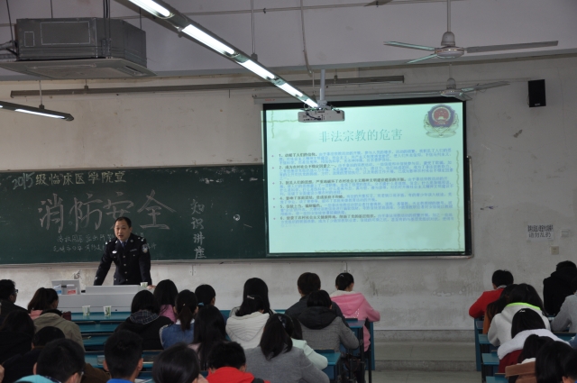 首先,由鄂小雷教导员作校园安全防范知识讲座。鄂小雷教导员简要介绍了高校园区派出所的管辖范围校园安全情况,并分析了对老员工容易上当受骗的原因,同时鄂小雷教导员还给同学们讲解了有关防范传销方面的知识和非法宗教的危害,他表示希望在周边各高校的协助下,通过安全防范知识讲座的形式提高老员工的警惕性,努力创建安全的校园环境。