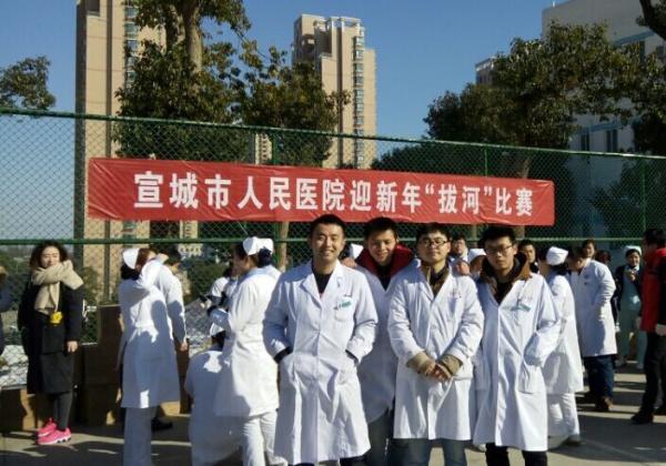 1月25日下午,宣城市人民医院举行了一场别开生面的“迎新年拔河比赛”。本次比赛采用淘汰制与循环制相结合的形式展开,以科室为单位参赛。凛冽的寒风和皑皑的积雪并未阻挡各参赛队的热情,场上队员团结一致,齐心协力,场下队员呐喊助威,掌声阵阵。整场比赛紧张而有序,体现了同学们团结协作的进取精神,也提升了实习队的凝聚力与荣誉感。