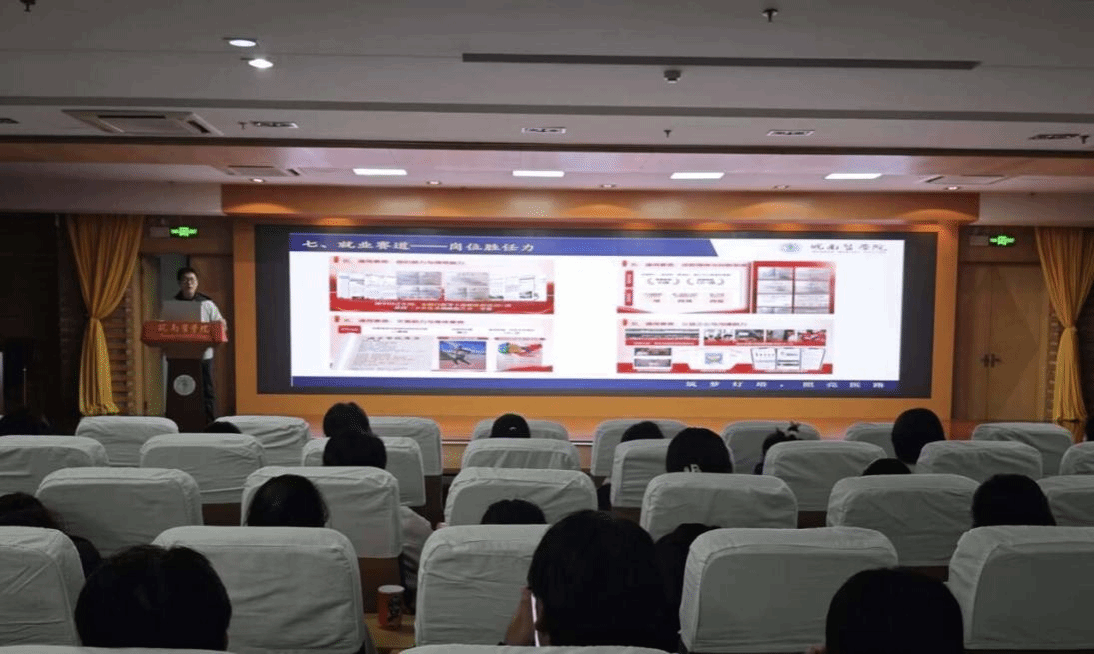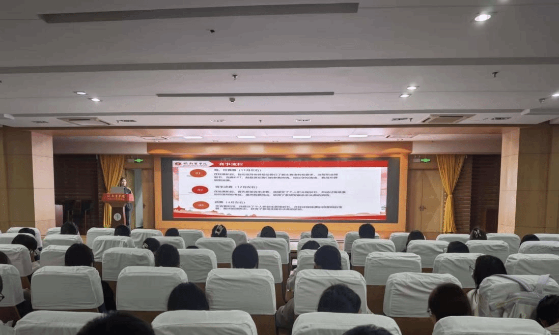 杨雨荷结合自身参赛经历,围绕职业规划大赛具体评比内容对职业规划书撰写、PPT演讲、评委问答等环节作介绍,提醒同学们要密切关注行业发展方向及岗位定位,书写个人职业规划书时重点要突出自己在相关方面的实践经历、科研项目及竞赛成绩等内容。檀啸详细介绍了就业赛道的基本概况、赛事要求、参赛流程及注意事项,重点介绍了成长赛道和就业赛道的异同,情景再现了比赛现场,分享了比赛过程中的心得体会和经验。