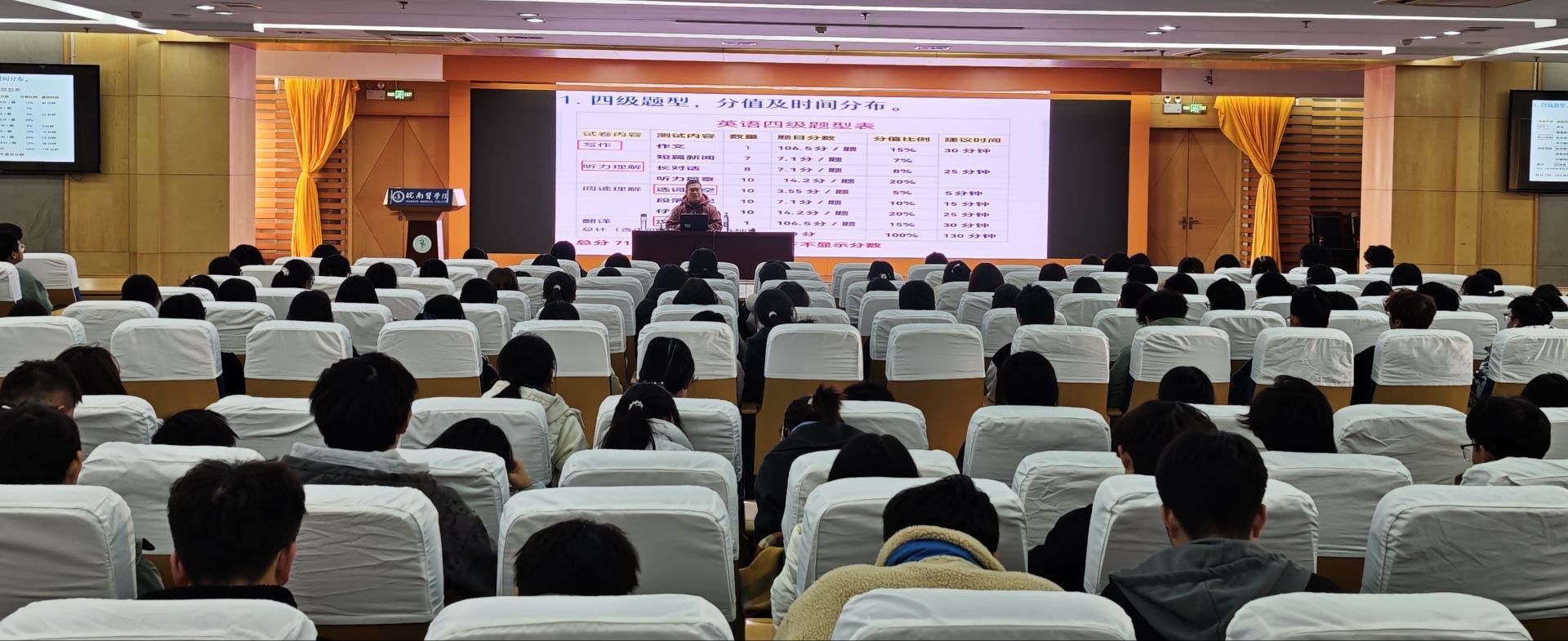 为帮助员工掌握高效备考方法,提升应试能力与英语综合水平,更好地备战大学英语四级考试,伟德国际VICTOR19462025级邀请英语专业教师和全国老员工外语能力大赛演讲比赛获奖者在图书馆三楼学术报告厅举办英语学习专题辅导。