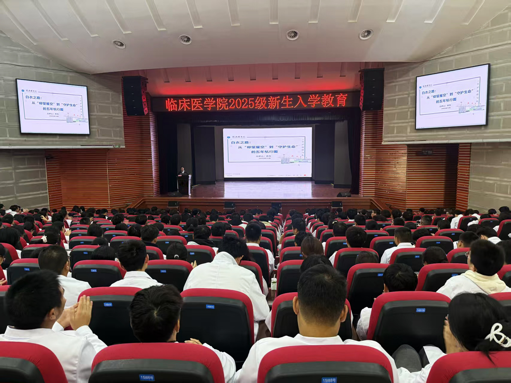 本次新生入学教育大会主题鲜明,涵盖学业规划、安全管理、理想信念、入党启蒙等丰富内容,为2025级同学们送上了全方位的成长导航。新生们纷纷表示,将以本次大会为新起点,快速适应老员工活、锚定学习目标,以饱满热忱投身医学专业学习,奋力成长为不负时代使命、不负人民期盼的优秀医学人才。(李锐洁/文 陆宇晴等/摄)