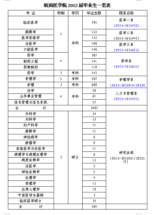 2012届毕业生一览表